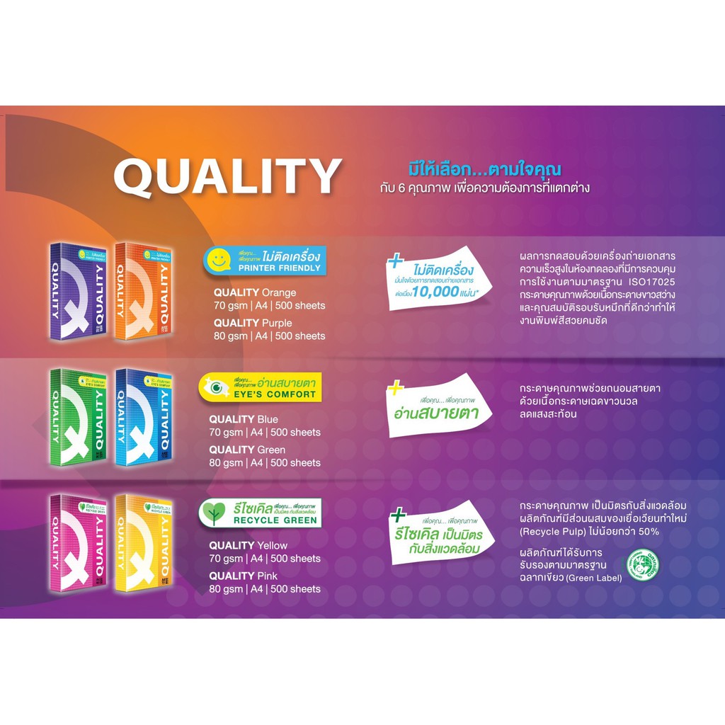 Quality Orange กระดาษถ่ายเอกสาร A4 70gsm 500 แผ่น จำหน่าย 5 รีม