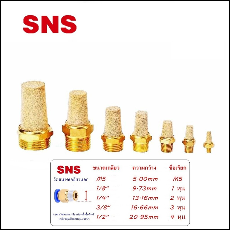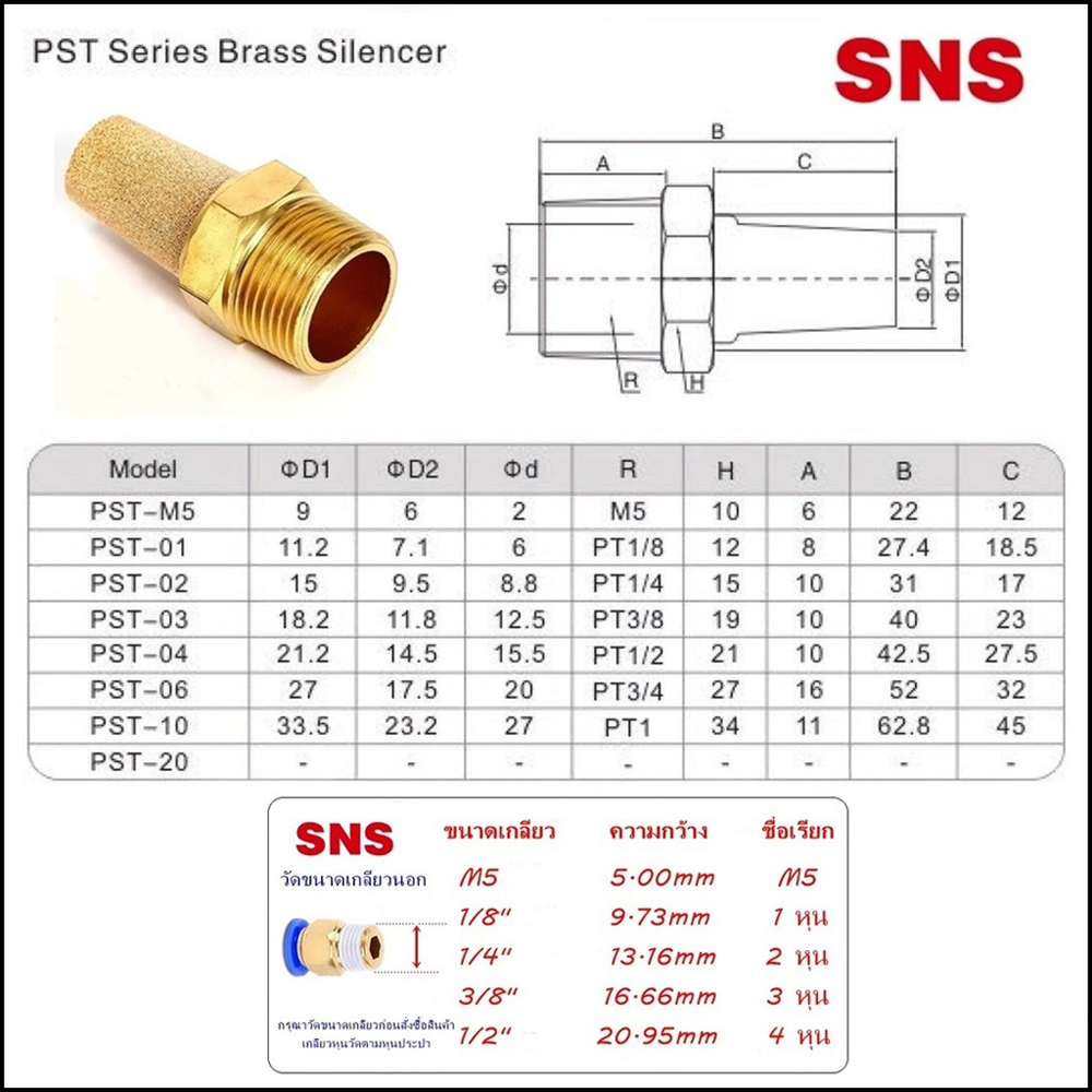 PST ตัวเก็บเสียงทองเหลืองนิวเมติกส์แบบหัวยาว Brass Silencer (ไซเลนเซอร์)-PST-01-1หุน,PST-02-2หุน,PST-03-3หุน,PST-04-4หุน