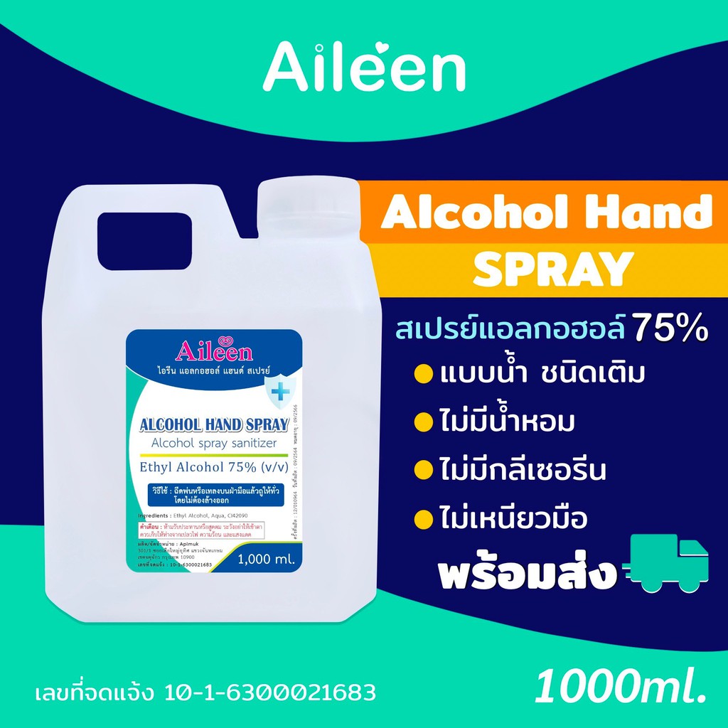 สเปรย์แอลกอฮอล์ 75%ปริมาณ1ลิตรชนิดน้ำ เกรดเครื่องสำอาง สีใสเติมขวดสเปรย์ พ่นมือไม่เหนียวมือ