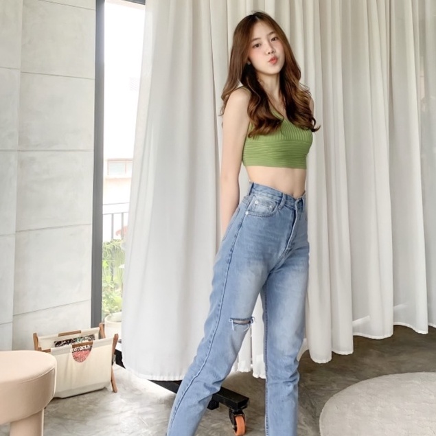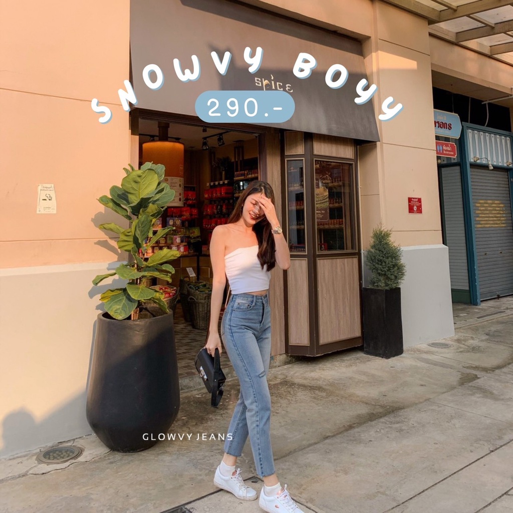 🌸GW🌸 รุ่น Snowvy boyy สียีนส์ฟอกอ่อน กางเกงยีนส์ขายาวทรงบอย