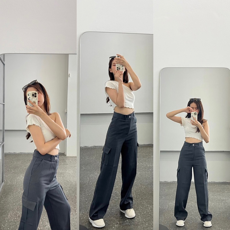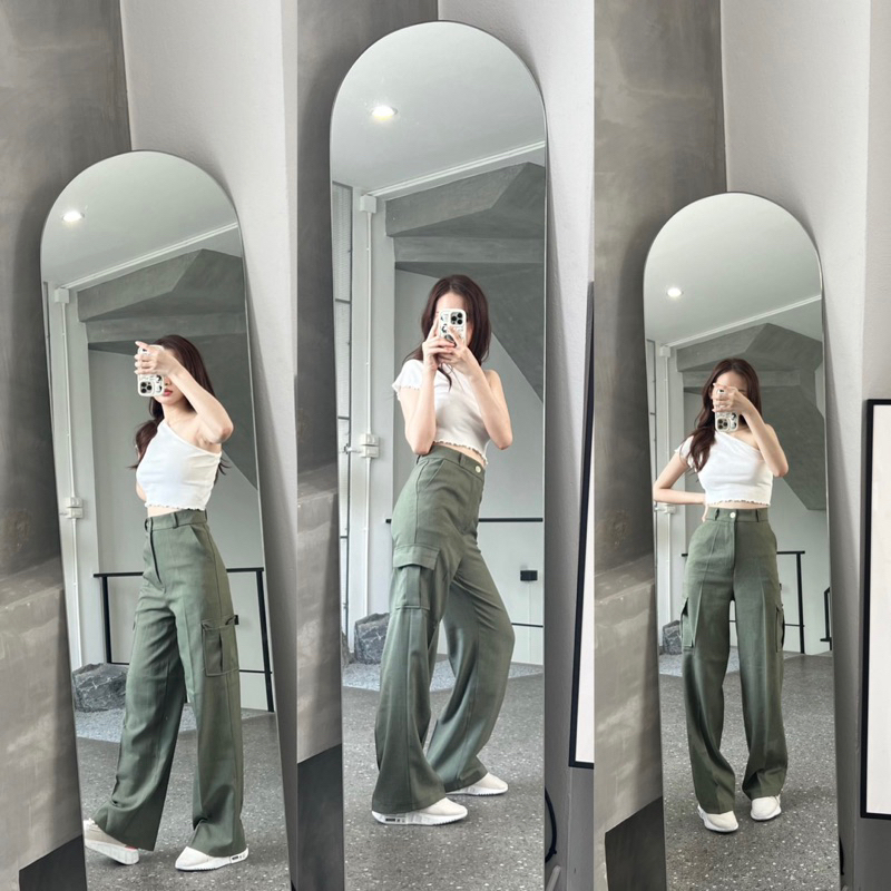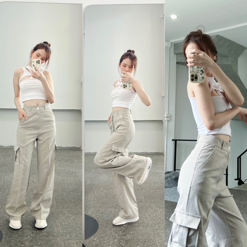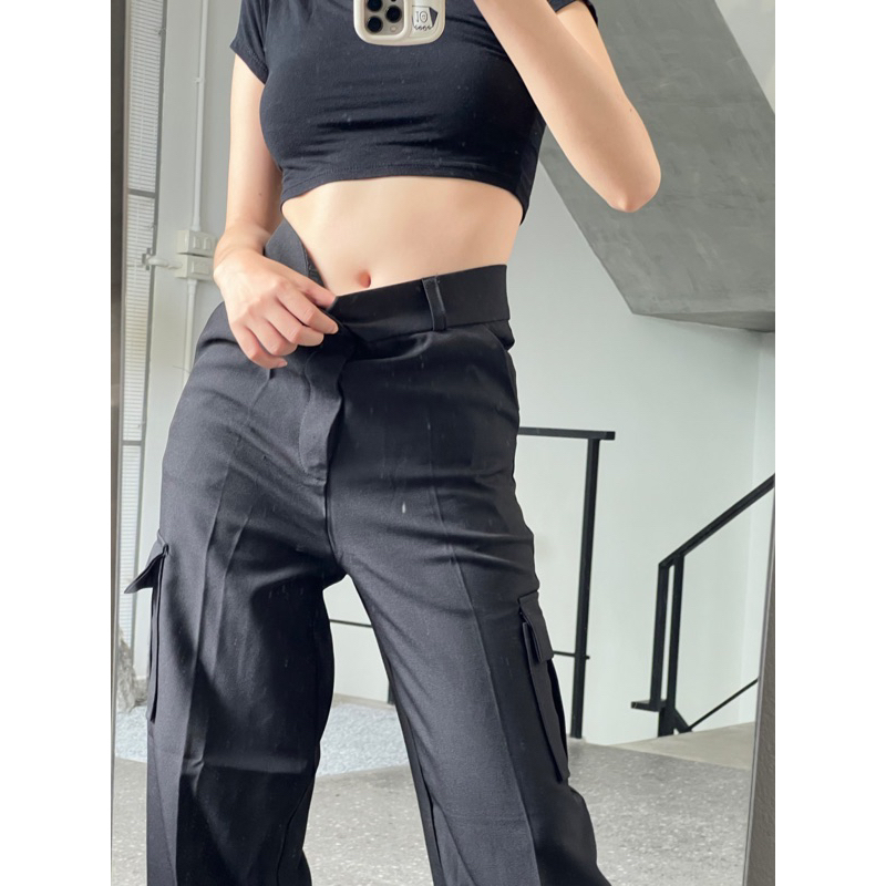 พร้อมส่ง (XS-3XL) กางเกงคาร์โก้เอวสูง มีกระเป๋าใช้งานได้จริง มีน้ำหนัก