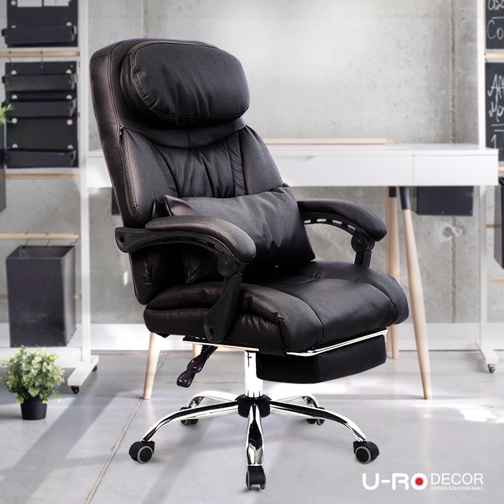 U-RO DECOR เก้าอี้สำนักงานปรับนอนได้ พร้อมที่รองขา รุ่น BAVARIA (บาวาเรีย) มีหมอนอิง 1 ใบ พนักพิงปรับเอนนอนได้ 90 - 150