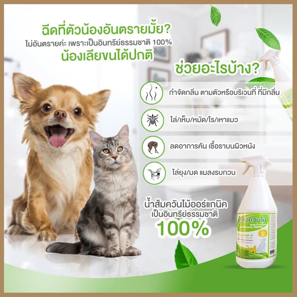 น้ำส้มควันไม้ สเปรย์กำจัดเห็บหมัด สเปรย์ดับกลิ่นฉี่สุนัข สเปรย์ดับกลิ่นฉี่แมว ไล่แมลง แก้อาการคัน