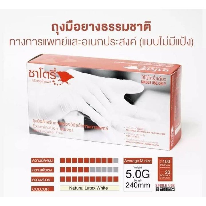 ตัวแทนแต่งตั้งจากโรงงาน - ถุงมือซาโตรี่ สีขาว แบบไม่มีแป้ง กล่องสีน้ำตาล (SATORY)