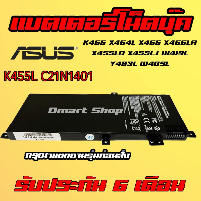 ส่งทันที แบตเตอรี่โน๊ตบุ๊ค C21N1401 Asus Battery Notebook Laptop C2INI401 X454L K455L X455 X454L W419