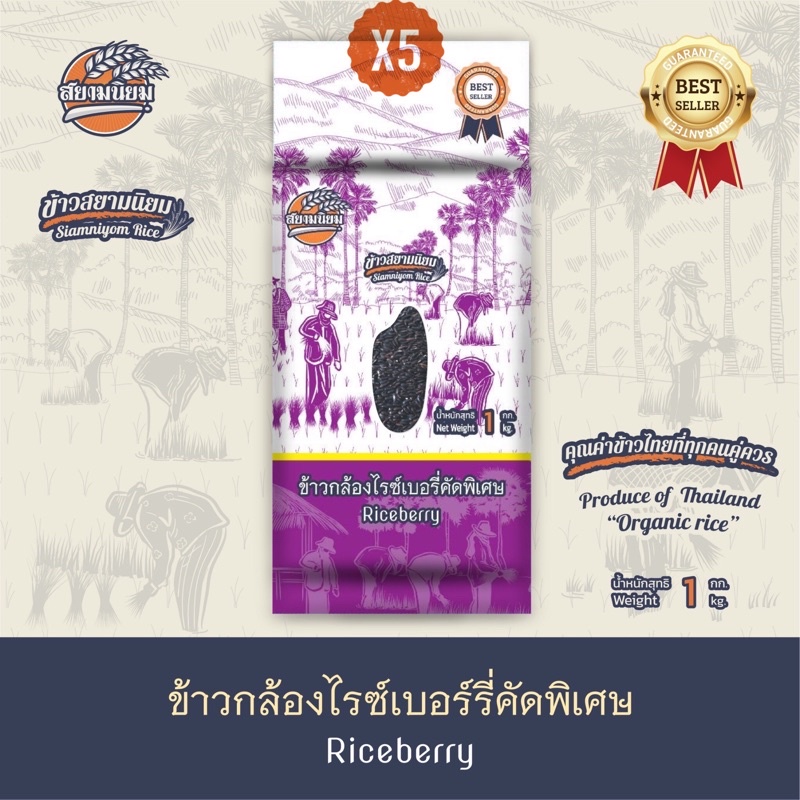 ข้าวกล้องไรซ์เบอรี่คัดพิเศษ ข้าวสีซีด (5กก.)5ถุงปลอดสาร