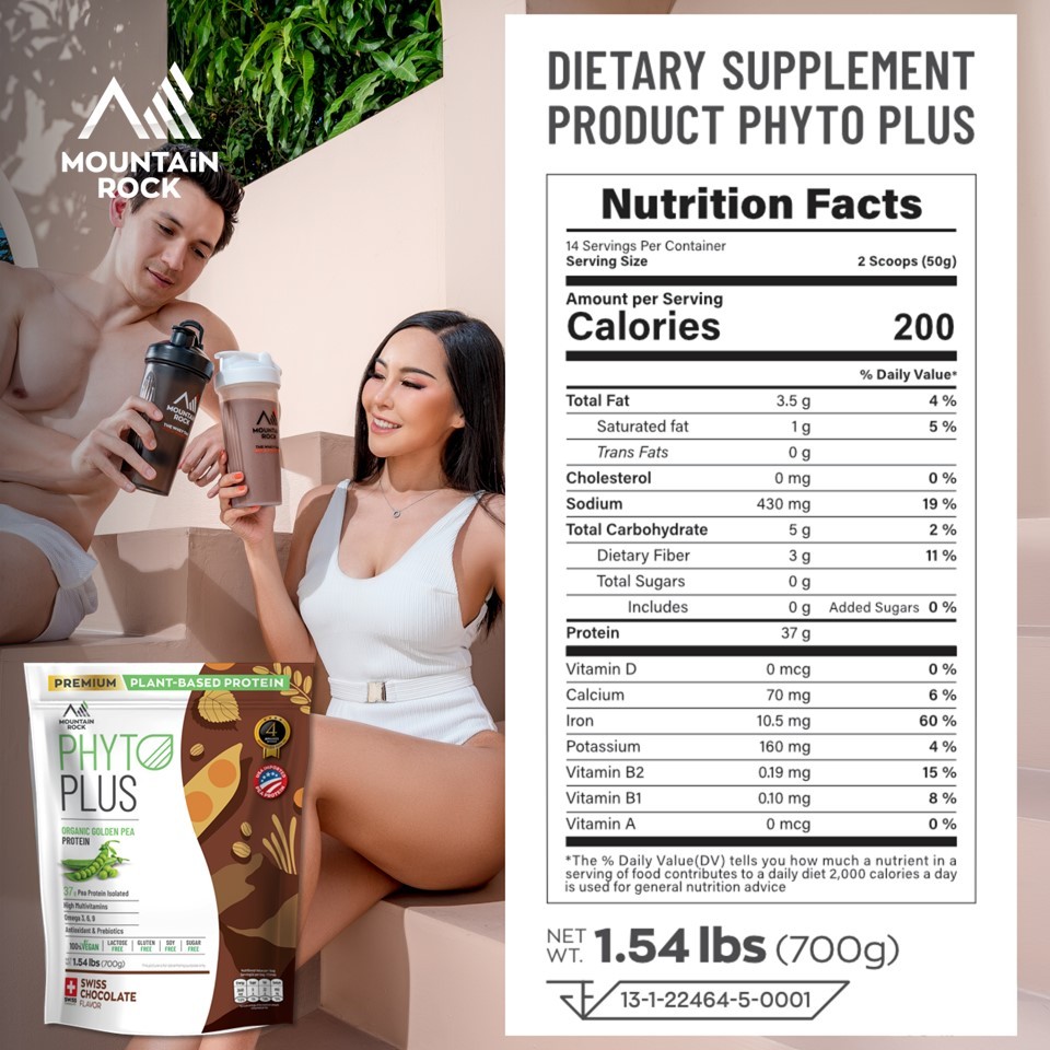 Mountain Rock Phyto Plus Golden Pea Protein 700g Swiss Chocolate | Plant Based Vegan โปรตีนพืช | Halal