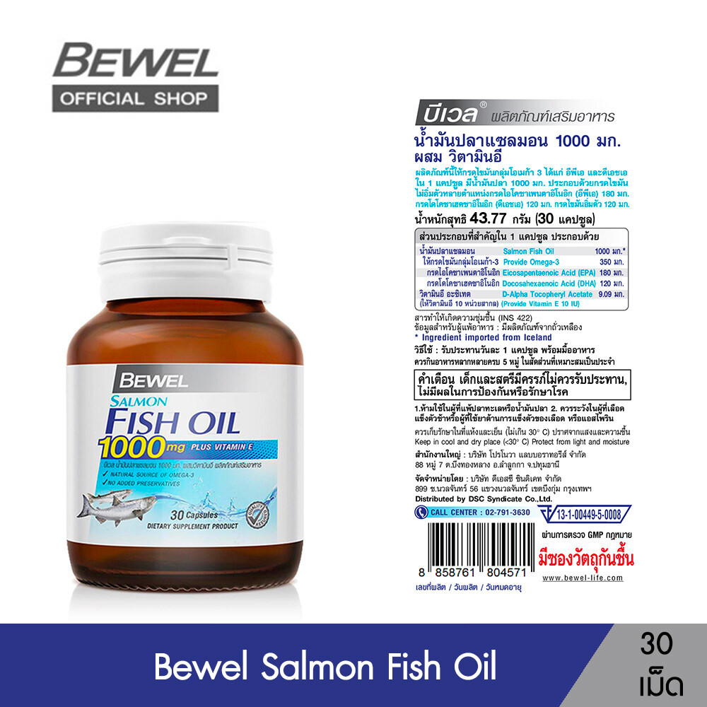 Bewel Salmon Fish Oil 1000 mg Plus vitamin E - บีเวลน้ำมันปลาแซลมอน ผสมวิตามินอี มีโอเมก้า 3 (30 เม็ด)