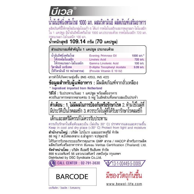 Bewel Evening Primrose Oil 1000mg Plus vitamin E (30 Capsule) 43.77 g