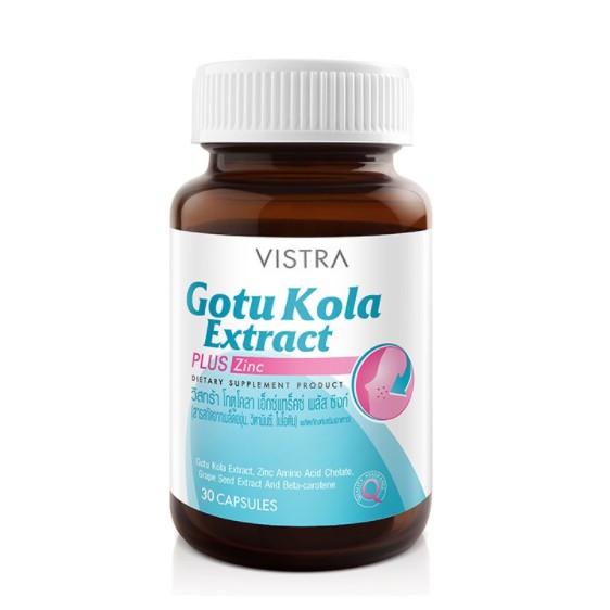 VISTRA GOTU KOLA EXTRACT PLUS ZINC 30 CAPS 16.5 กรัม - วิสทร้า โกตู โคลา เอ็กแทรค พลัส ซิงก์ (สารสกัดจากใบบัวบก)
