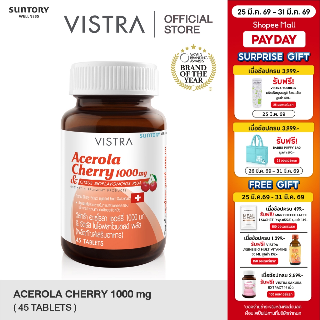 VISTRA Acerola Cherry 1000 mg. (45 Tablets) 65.25g