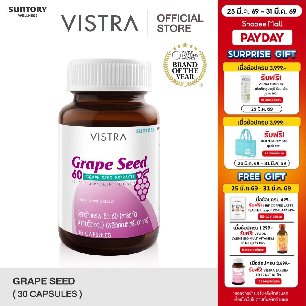 VISTRA GRAPE SEED 60 MG (30 เม็ด) 15 กรัม