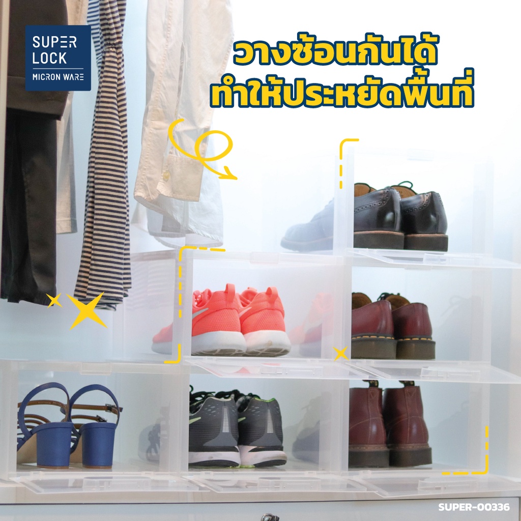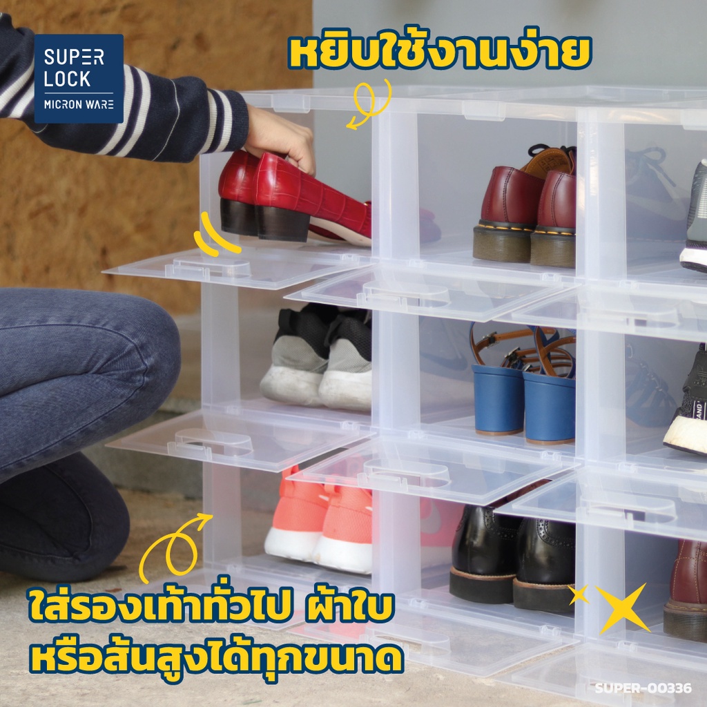 Super Lock กล่องรองเท้า 4 กล่อง พลาสติกแข็ง เปิดฝาหน้า ซ้อนได้ ใส่รองเท้าหุ้มส้น ส้นสูงได้ รุ่น 5657