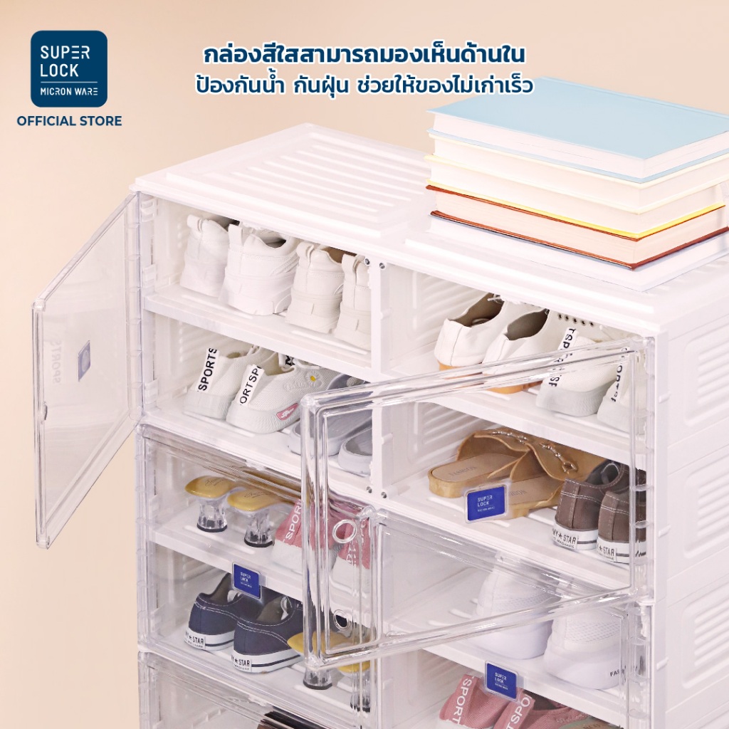 Super Lock ตู้รองเท้าพับได้ 6/12/20/24/40 คู่ Shoe Box เปิดฝาหน้า พลาสติกแข็ง ประกอบง่าย 5687 5693