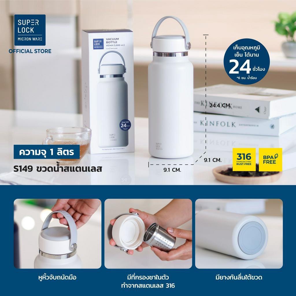 Super Lock ขวดน้ำสแตนเลส 316 ขวดน้ำเก็บอุณหภูมิ ขนาด 1 ลิตร มีที่กรองชาด้านใน Stainless Steel Bottle รุ่น S149