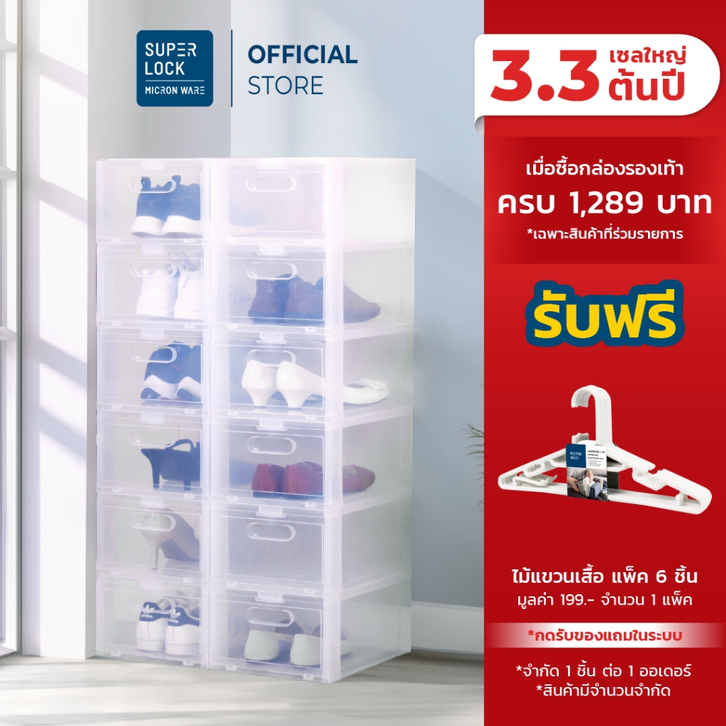 [ซื้อ 10 แถม 2] Super Lock กล่องรองเท้า Super Box 5657 พลาสติกแข็ง เปิดฝาหน้า ซ้อนได้ ใส่รองเท้า