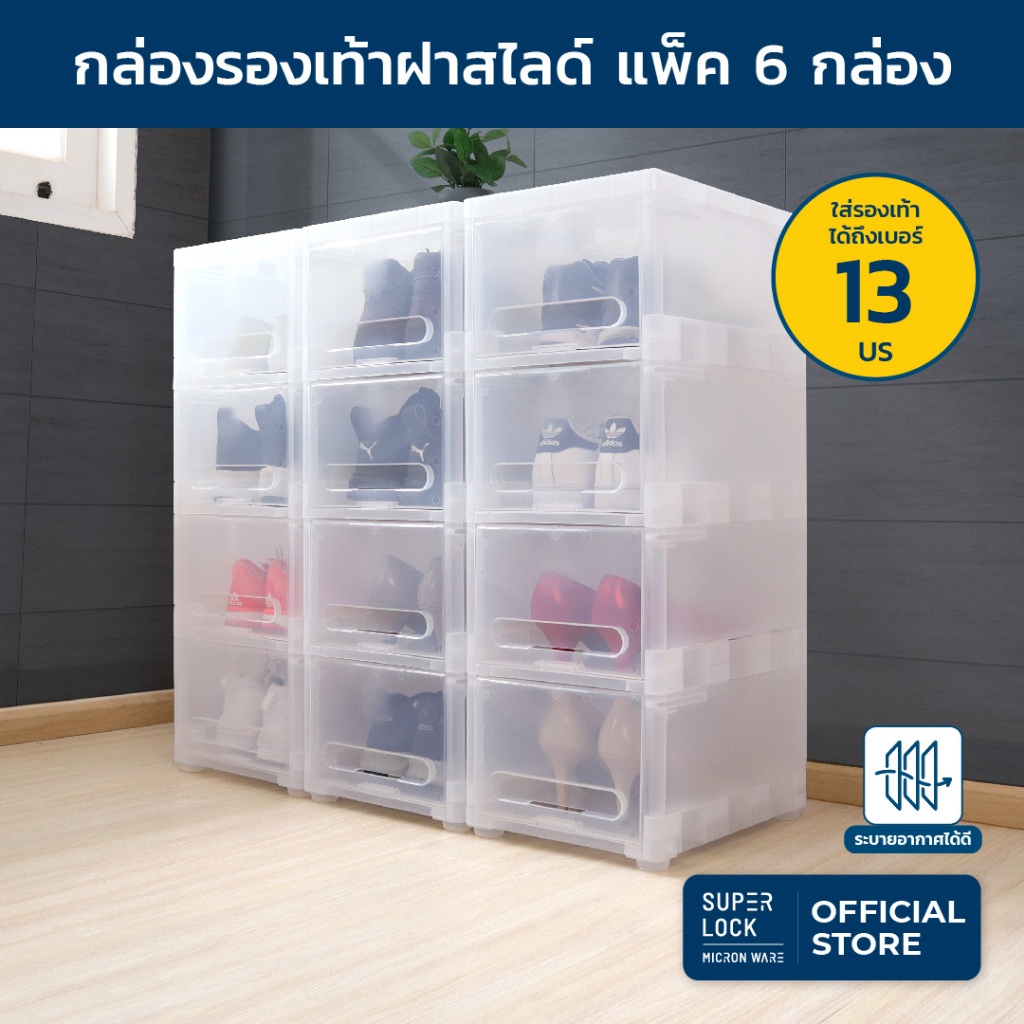 Super Lock กล่องรองเท้า แพ็ก 6 กล่อง Super Box 5660 พลาสติกแข็ง กันฝุ่น เปิดฝาหน้า ใส่ได้ทุกขนาด