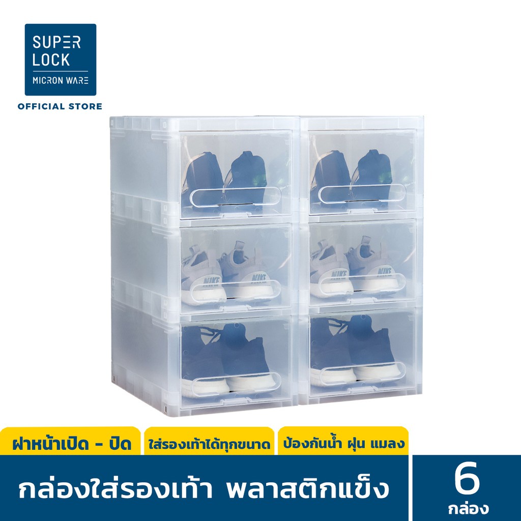 Super Lock กล่องรองเท้า แพ็ก 6 กล่อง Super Box 5660 พลาสติกแข็ง เปิดฝาหน้า รองเท้า 13US