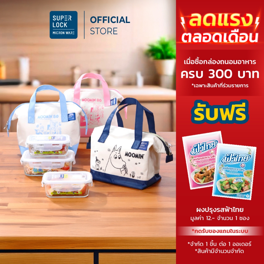 Super Lock ชุดกล่องแก้ว ถนอมอาหารพร้อมกระเป๋าเก็บอุณหภูมิ BPA Free ลายลิขสิทธิ์แท้ Moomin NNN