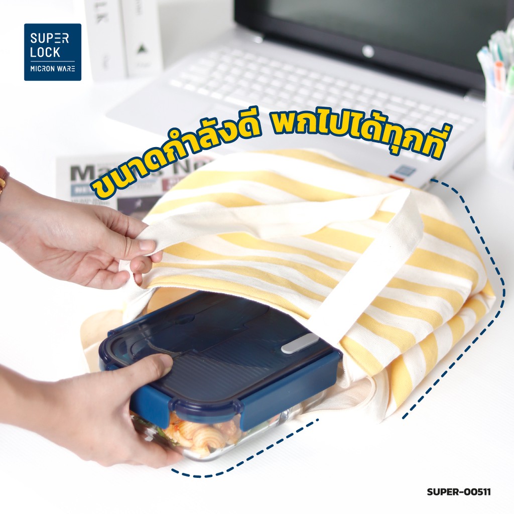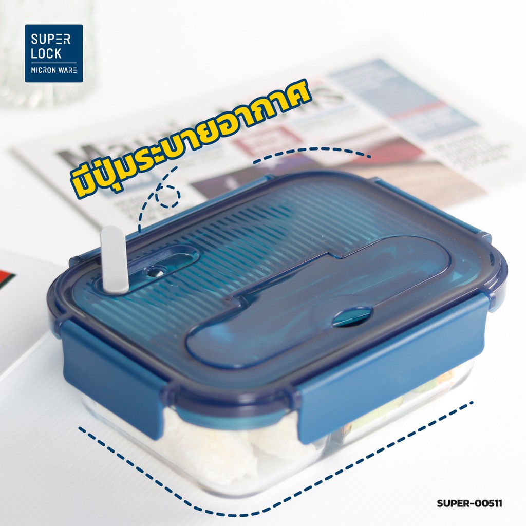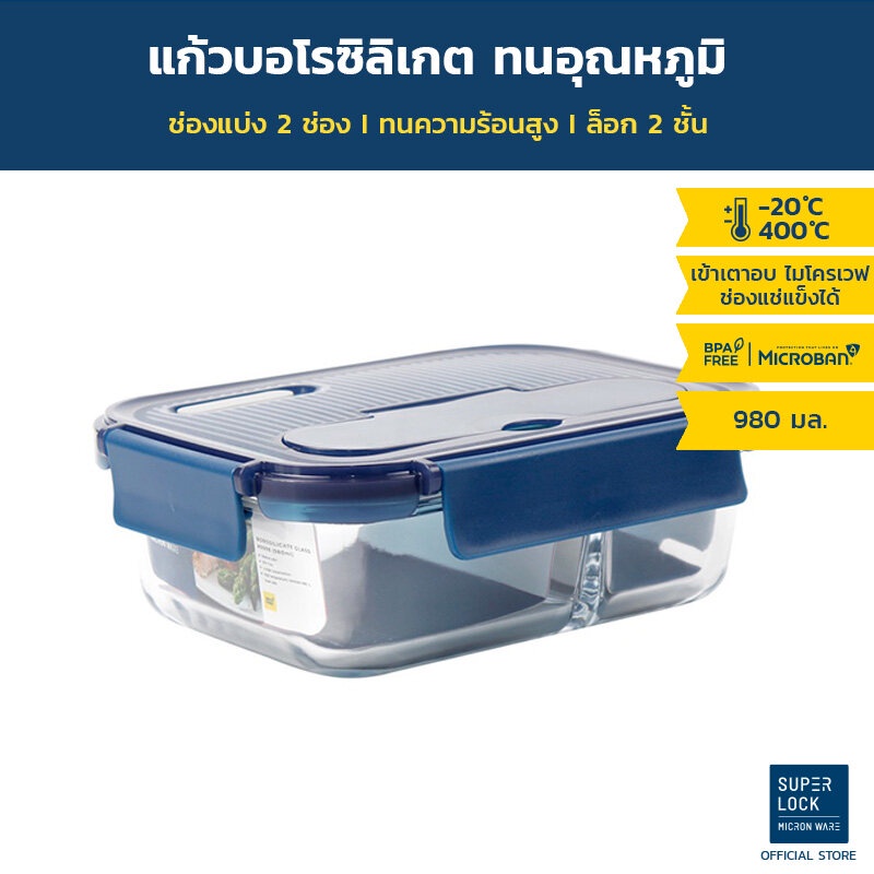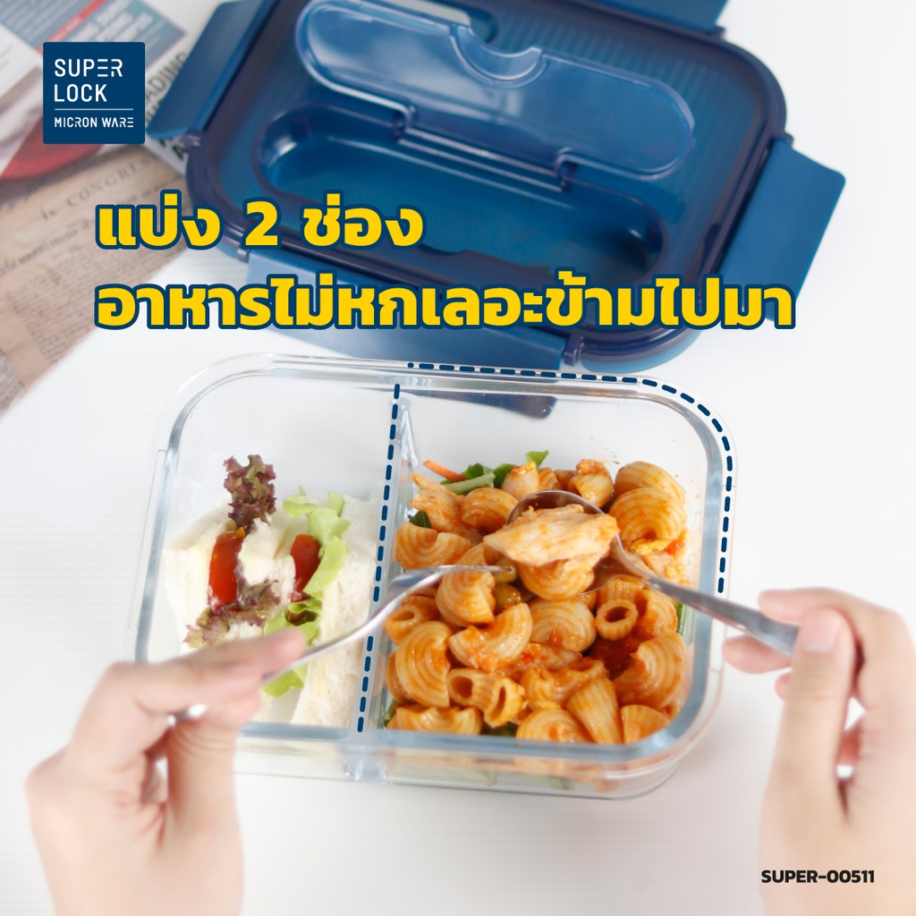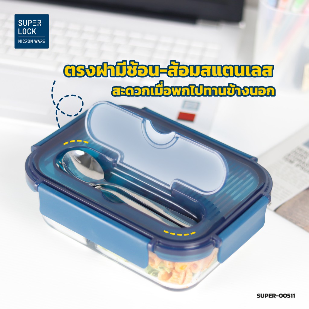 Superlock Glass กล่องแก้วถนอมอาหาร มีช่องแบ่ง 2 ช่อง พร้อมช้อนส้อม รุ่น 6092 BPA Free