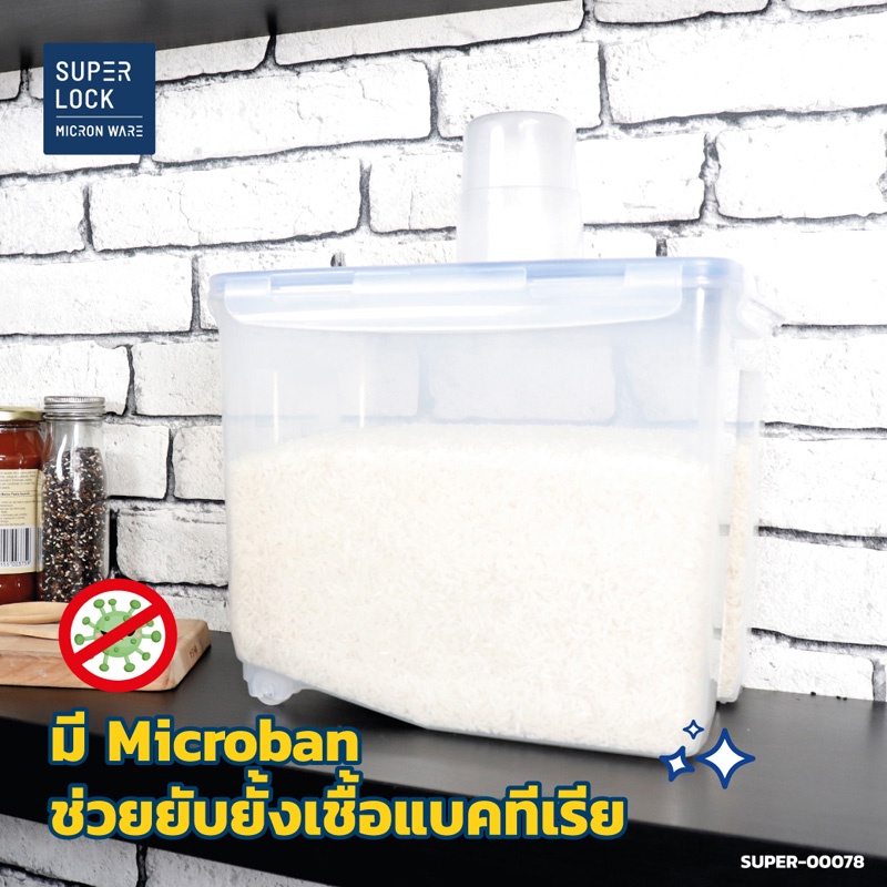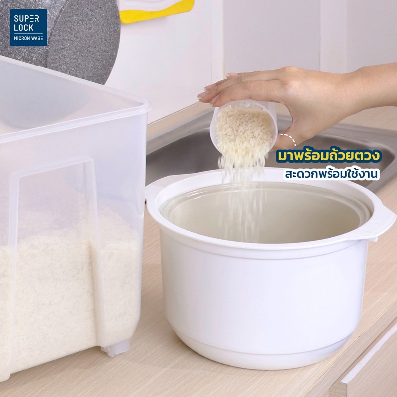 Super Lock กล่องใส่ข้าวสาร ถ้วยตวง 6042 5 กก.ล็อก 2 ชั้น เก็บกลิ่น ปราศจากสารก่อมะเร็ง BPA Free