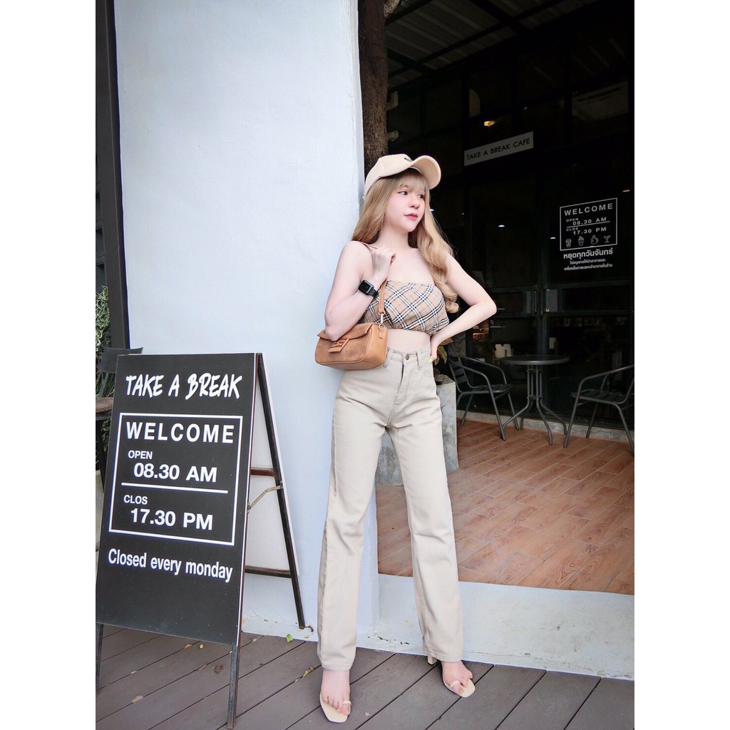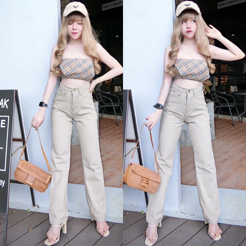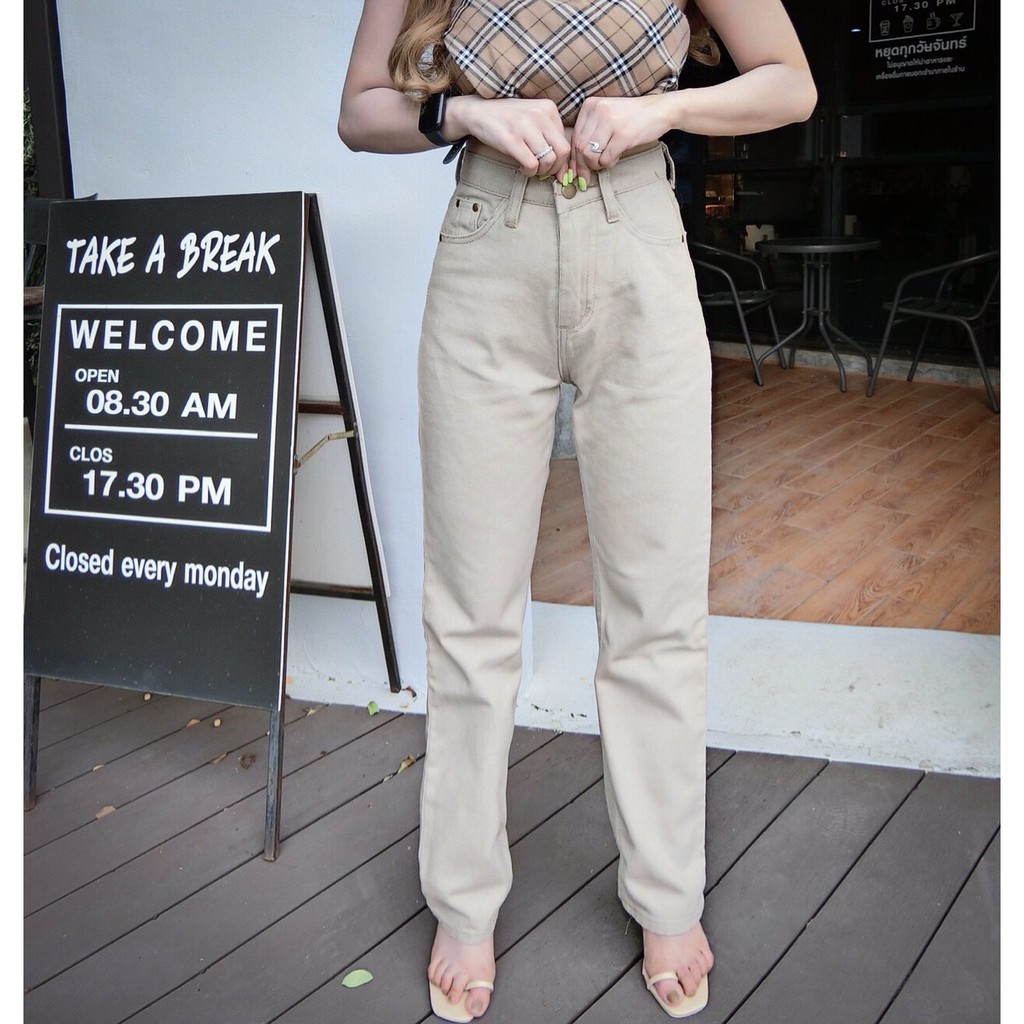 Cc jeans 161 S-5XL กางเกงยีนส์ผู้หญิง ทรงกระบอก เอวสูง สีอ่อน