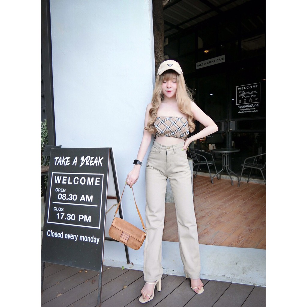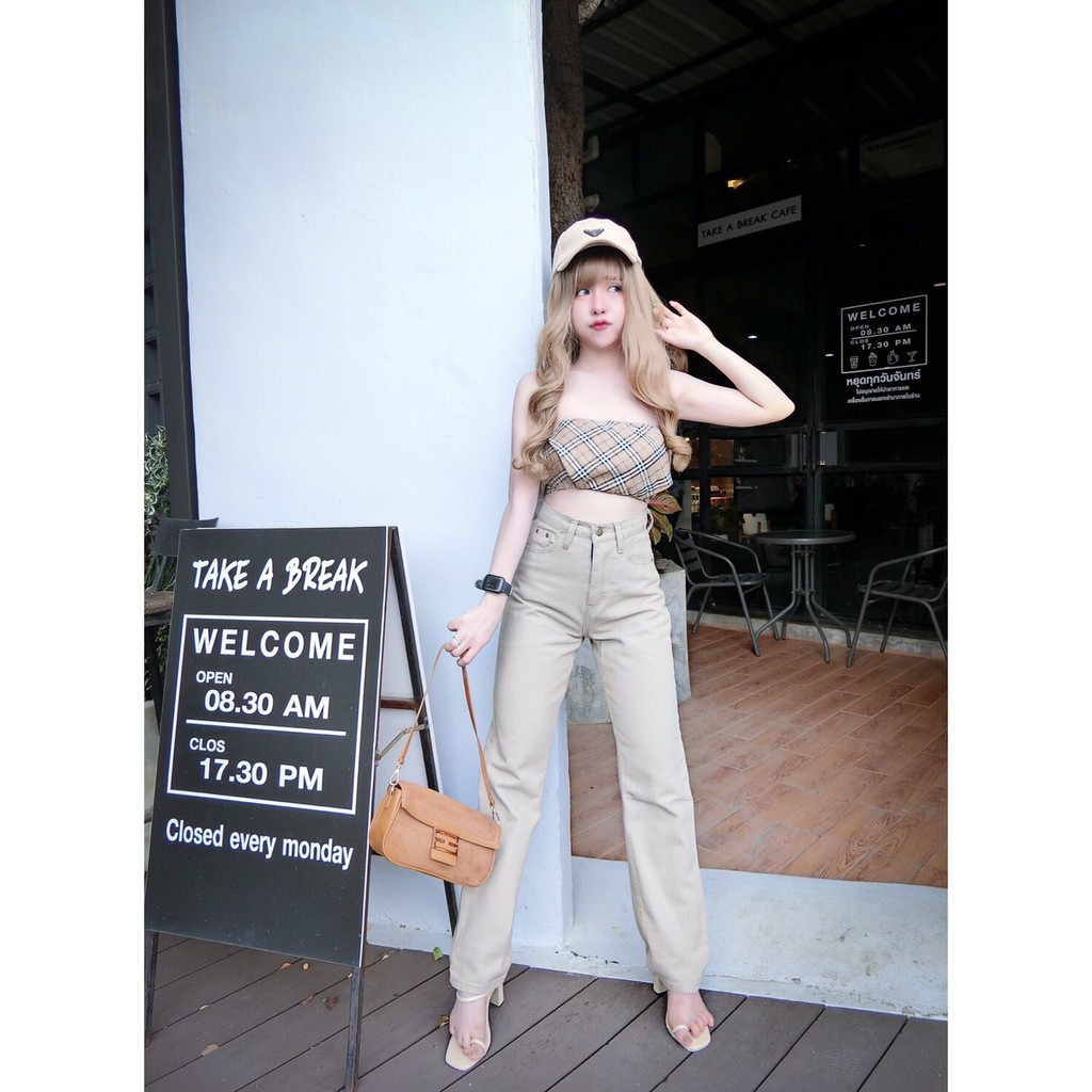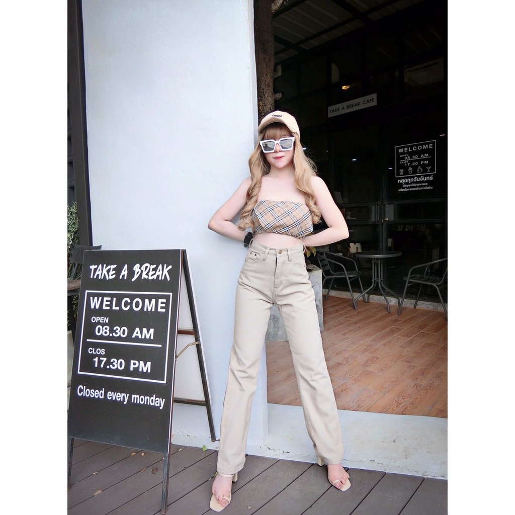 Cc jeans 161 S-5XL กางเกงยีนส์ผู้หญิง ทรงกระบอก เอวสูง สีอ่อน