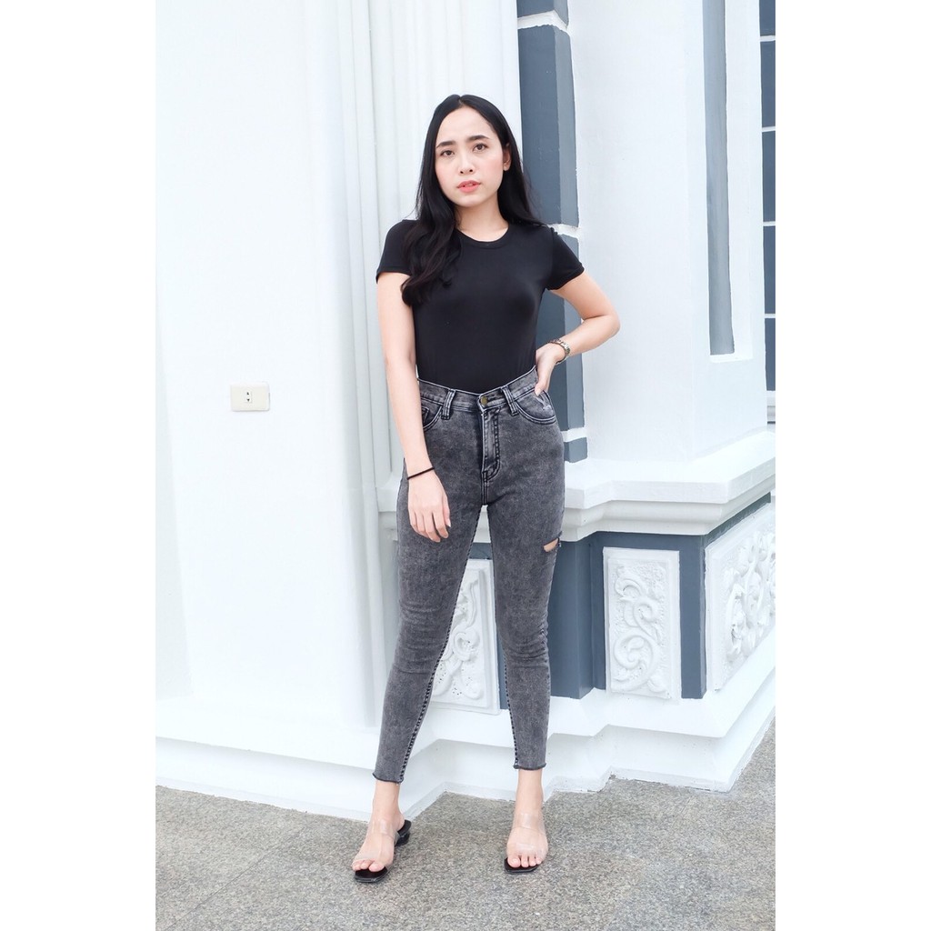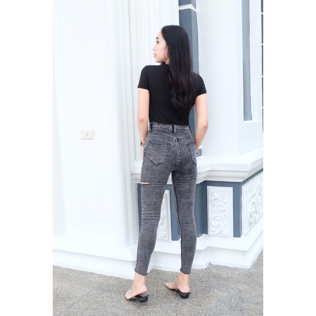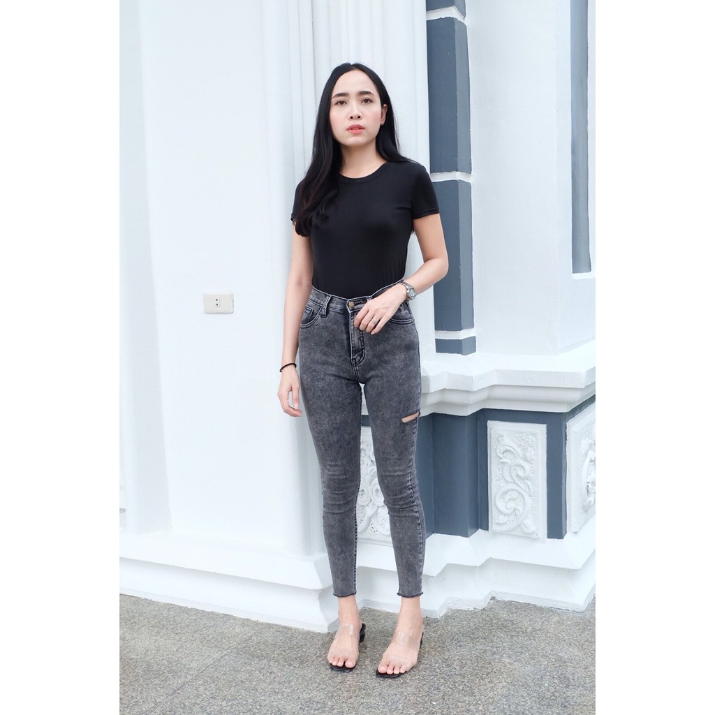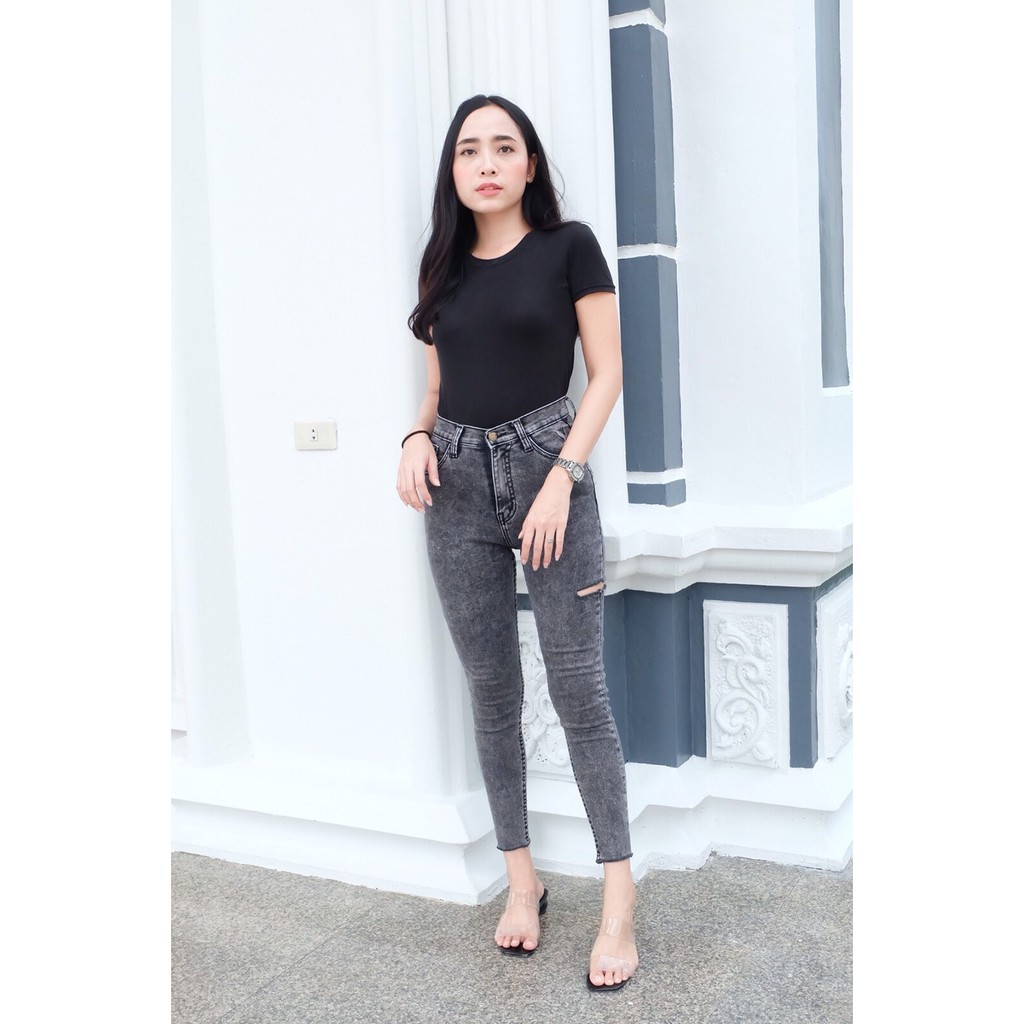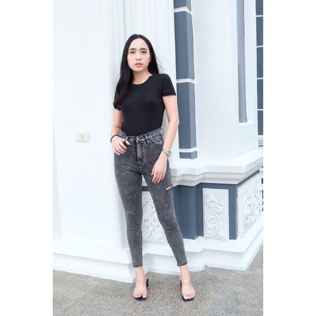 Cc jeans #073 S-5XL กางเกงยีนส์ผู้หญิง เอวสูง ขาเดฟ ยีนส์ขาด ปักนก ฟอกเซอร์