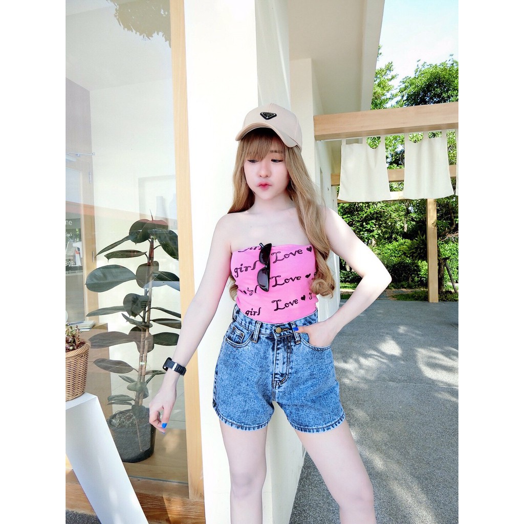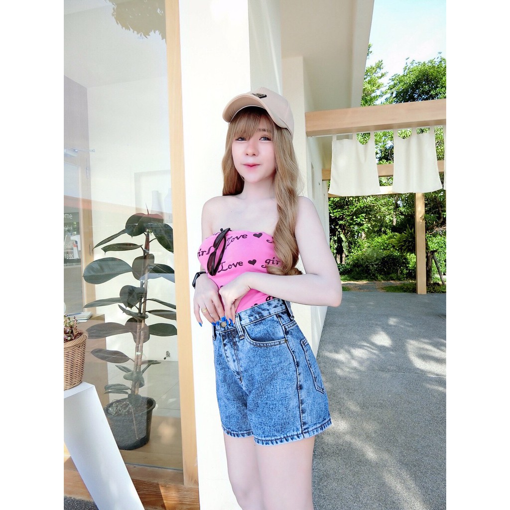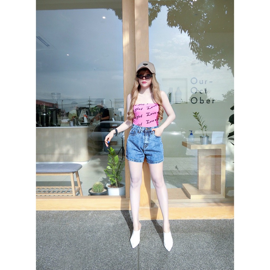 Cc jeans 101 กางเกงยีนส์ เอวสูง ขาสั้น ฟอกด่างแฟชั่น