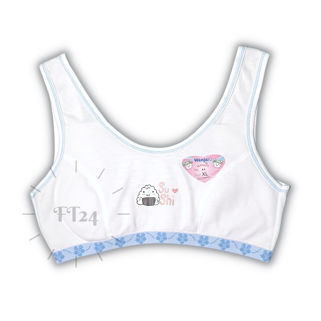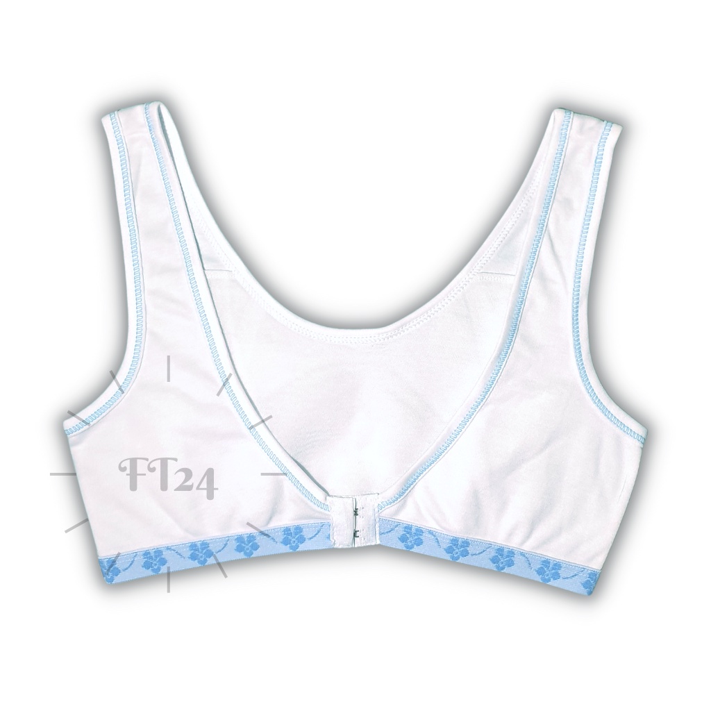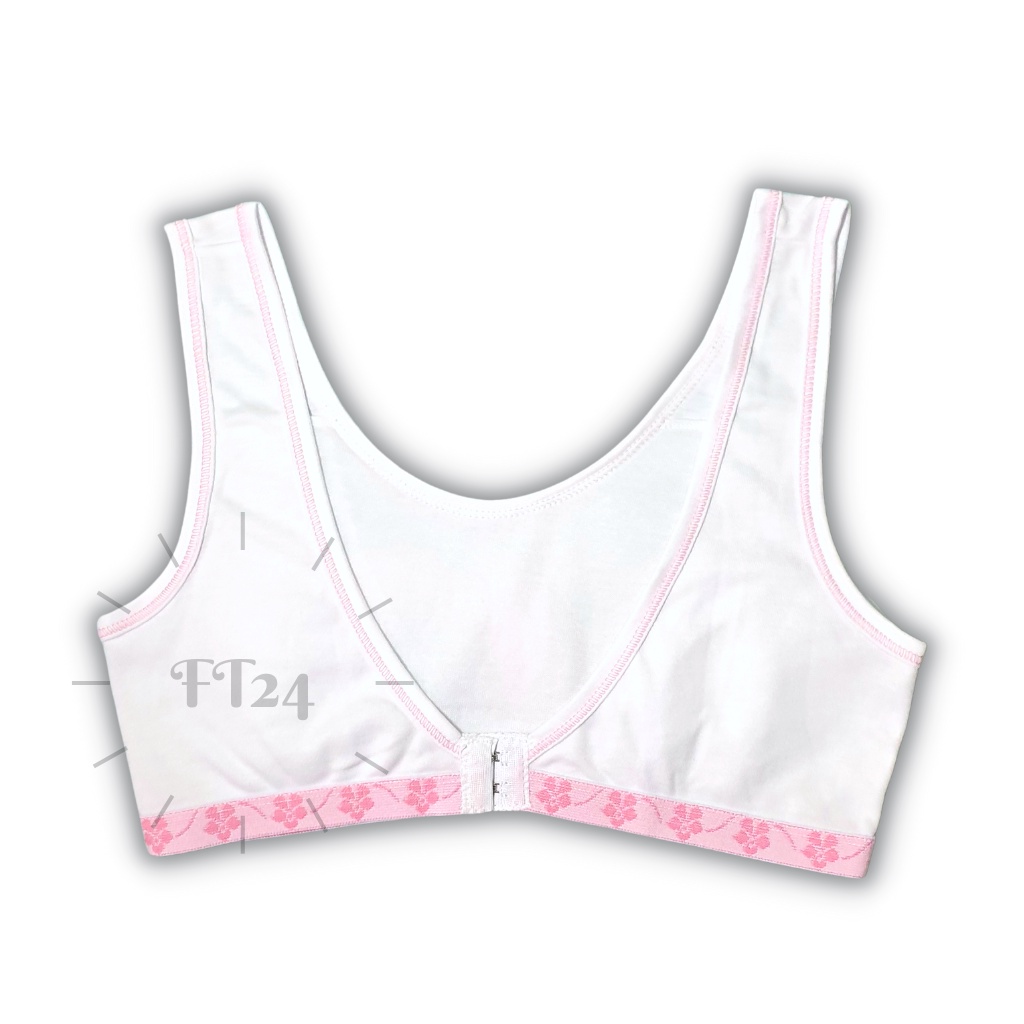 เสื้อชั้นในเด็ก 1 ตัว first bra แบบมีตะขอ สีขาว แต่งฟ้า / ชมพู ร้านสุ่มสีให้ แบรนด์ไทย