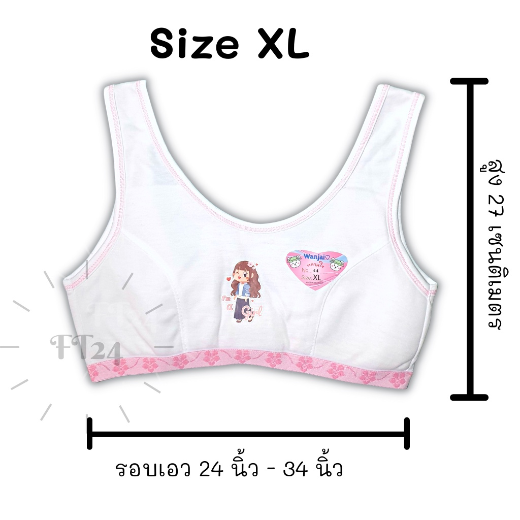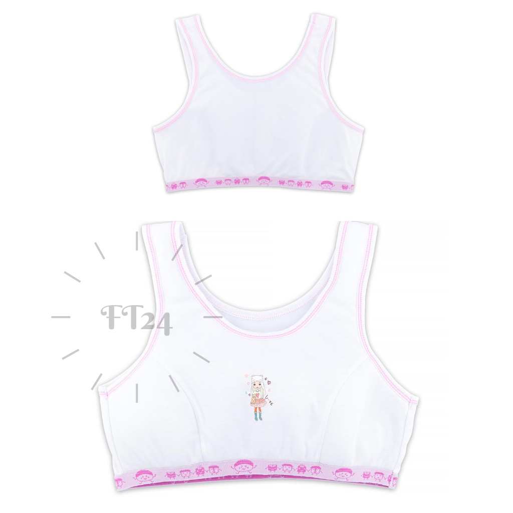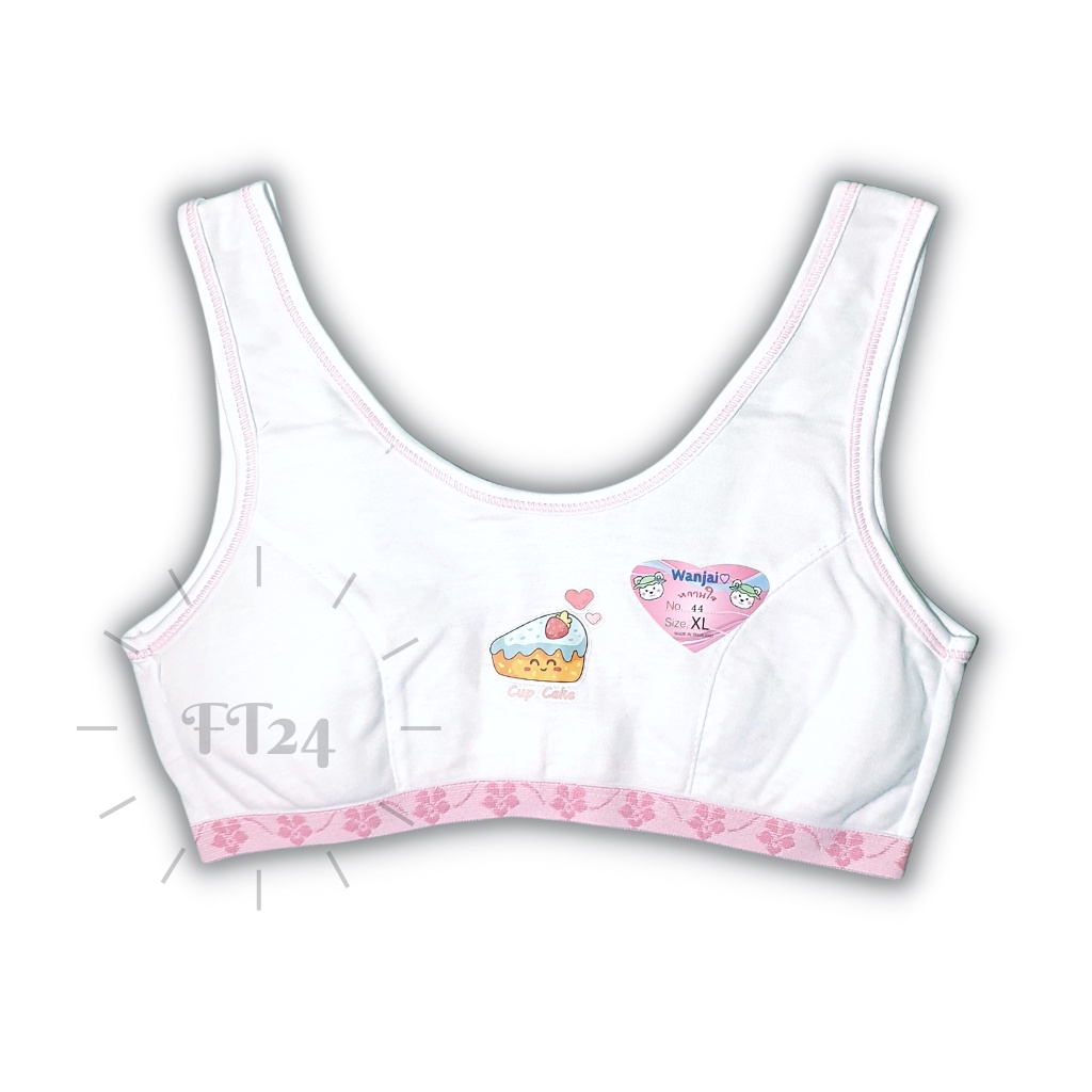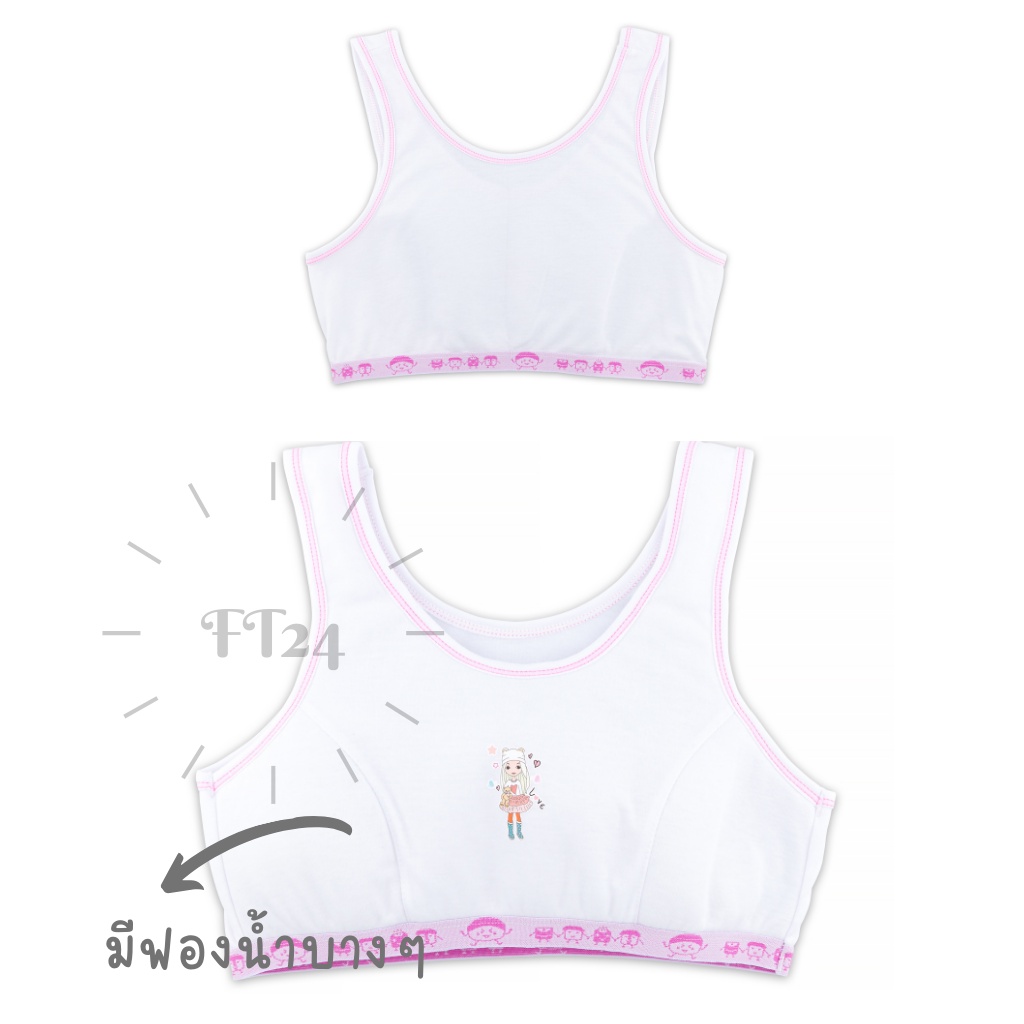 เสื้อชั้นในเด็ก 1 ตัว first bra แบบมีตะขอ สีขาว แต่งฟ้า / ชมพู ร้านสุ่มสีให้ แบรนด์ไทย