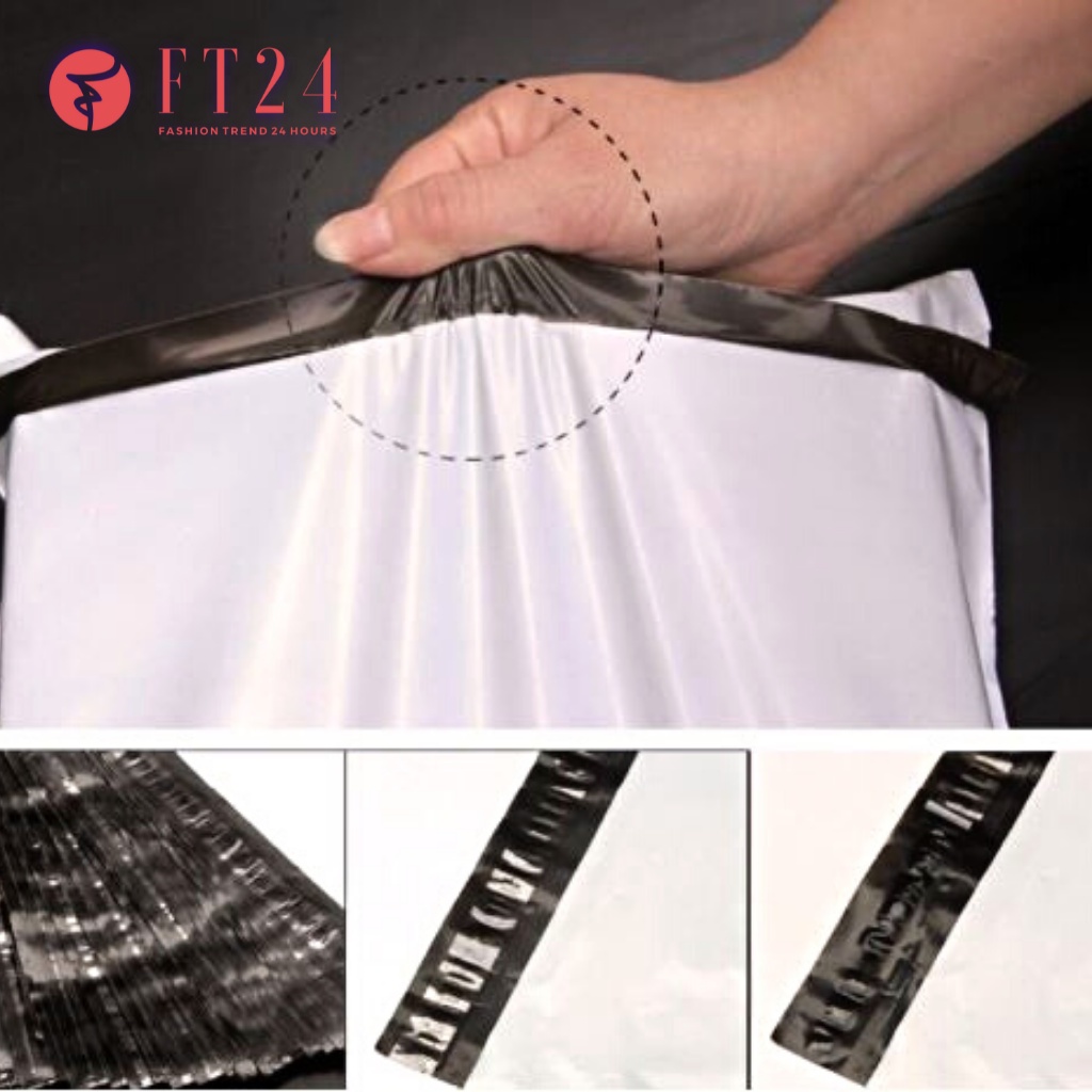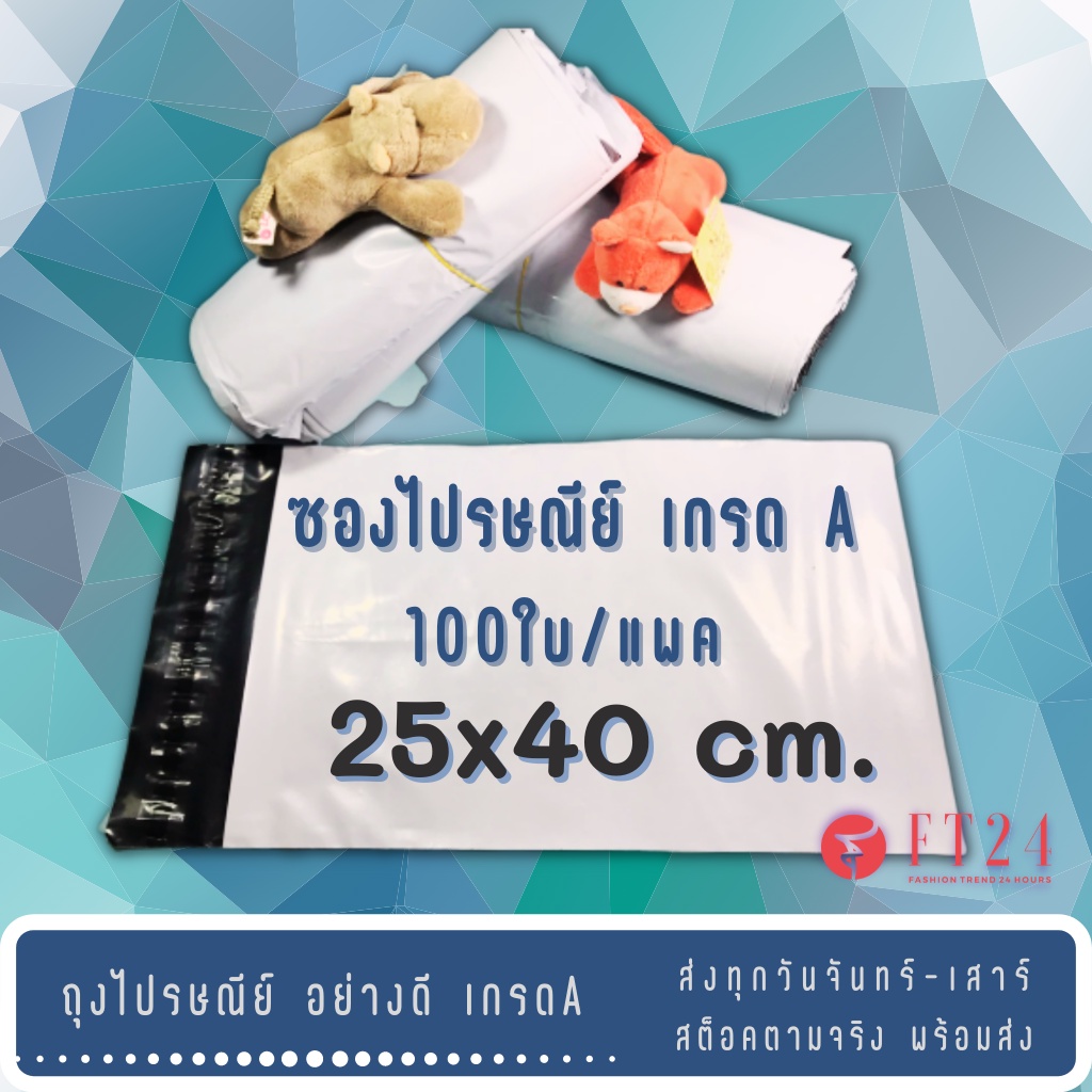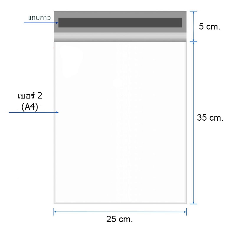 ซองไปรษณีย์พลาสติก 25x35(+5) cm. สีขาว อย่างหนา กาวเหนียว หลากไซส์ แพคละ 100 ใบ ปณท