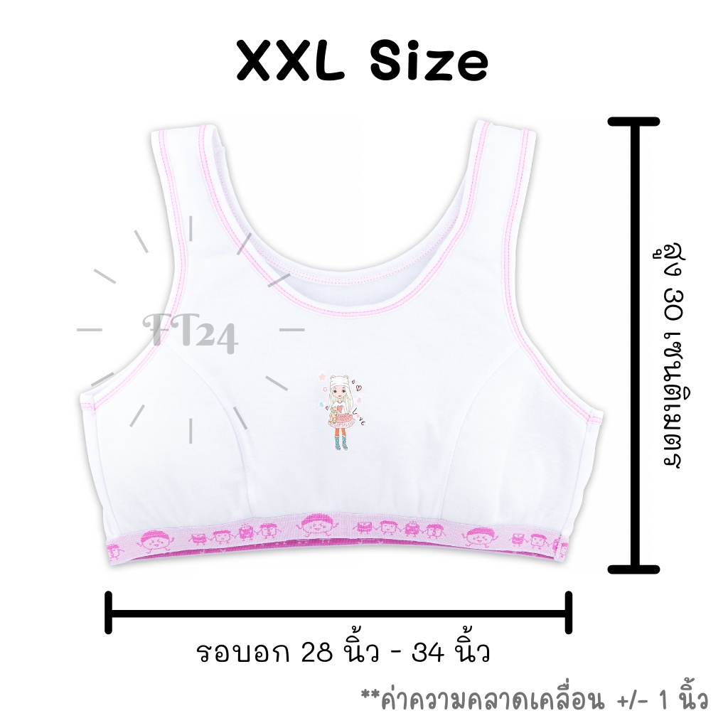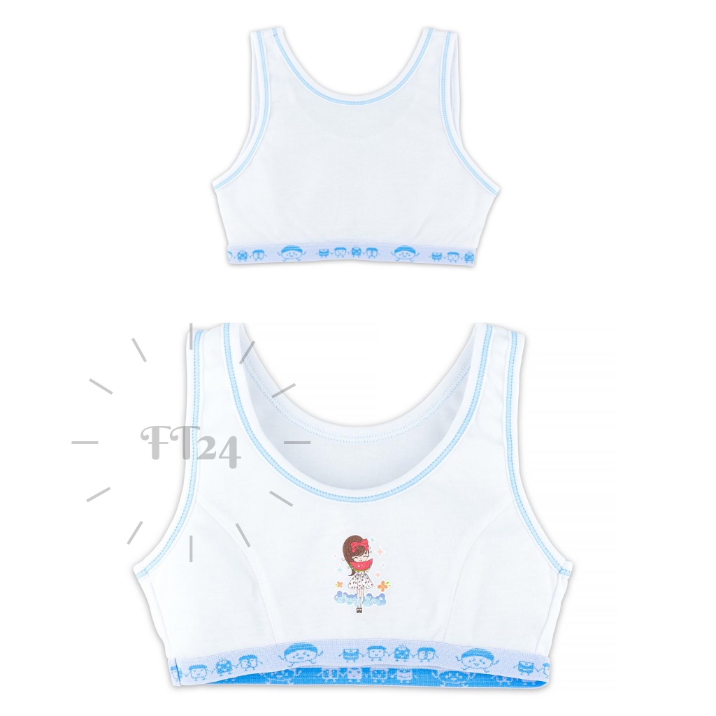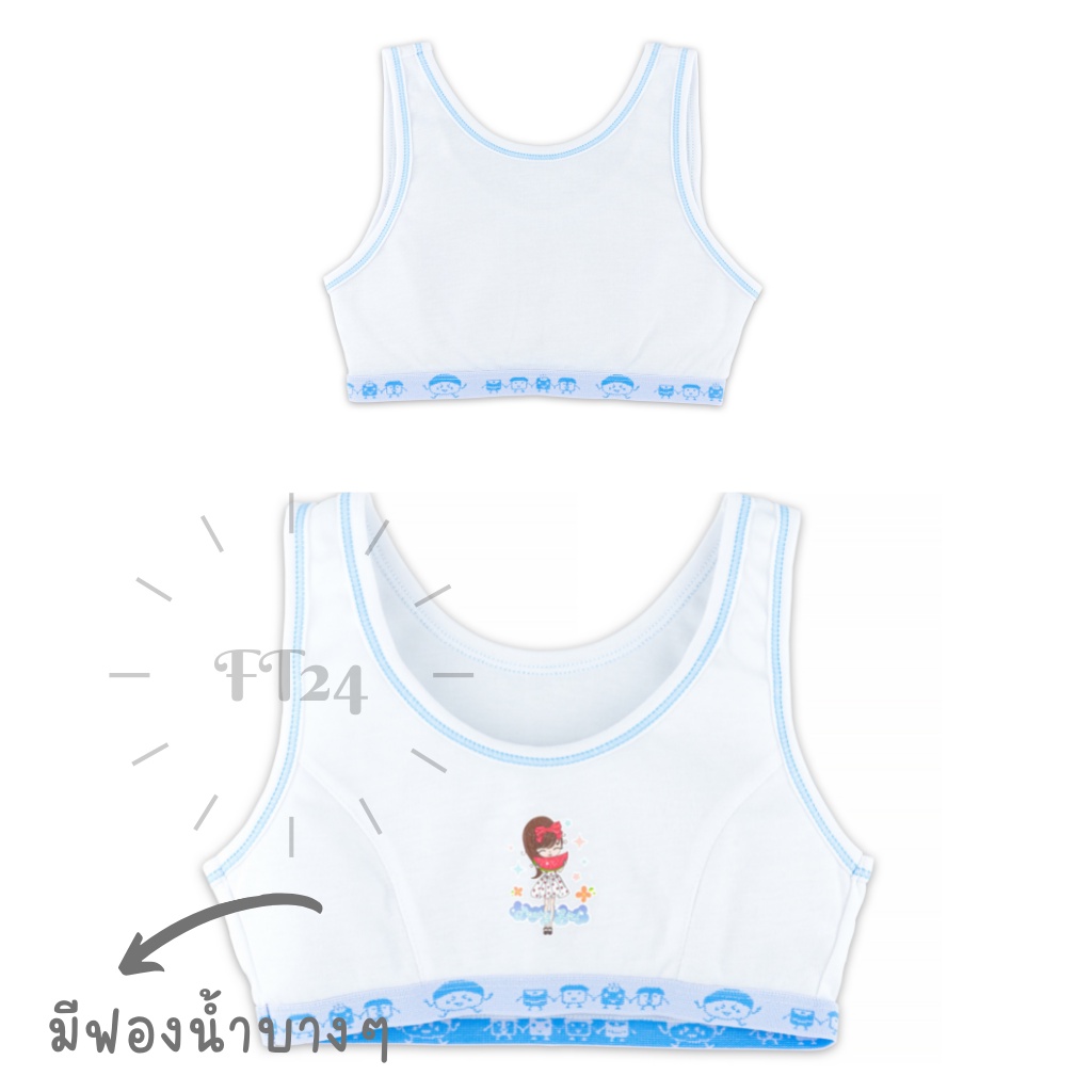 👩เสื้อชั้นในเด็กผู้หญิง👩แบบสวมหัว First bra สีขาวแต่งชมพูหรือฟ้า มีฟองน้ำ เด็กปร ะถม เนื้อผ้านุ่ม ใส่สบาย ลายน่ารัก