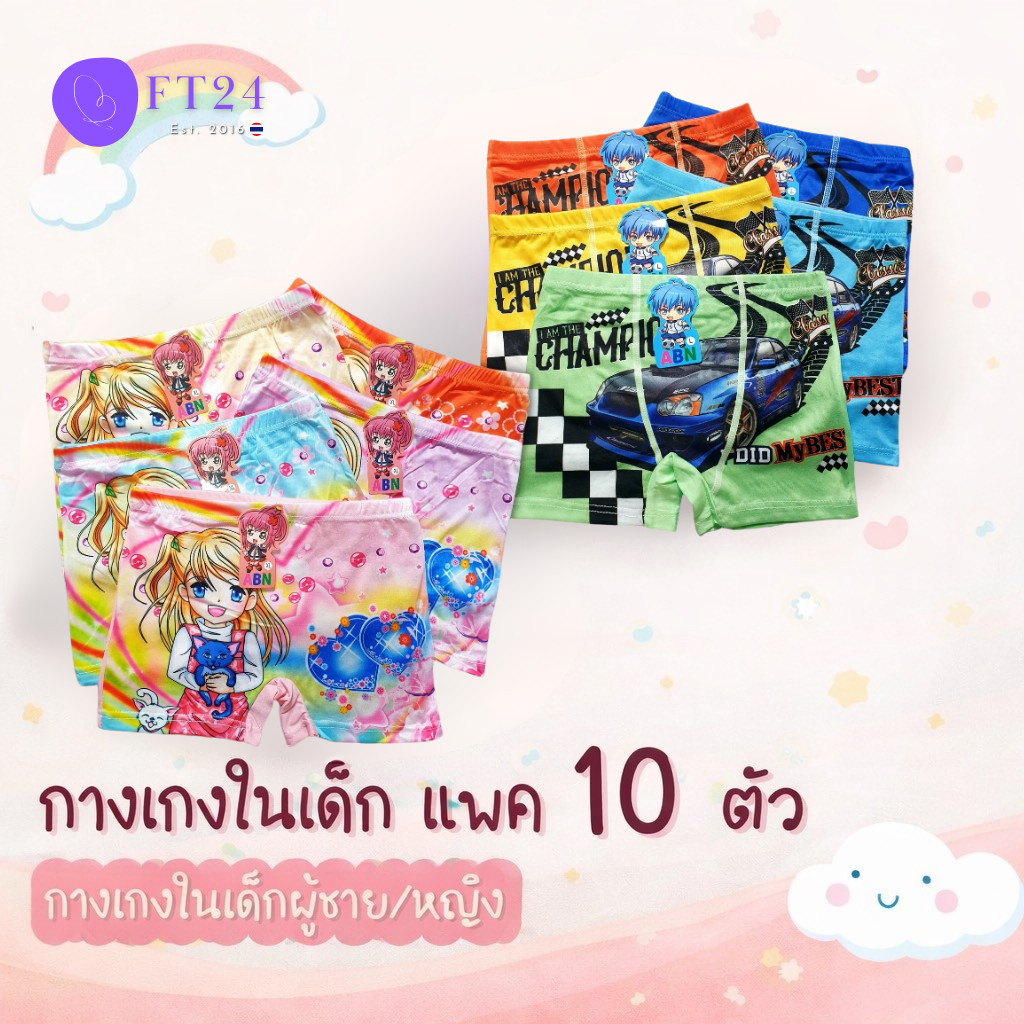 👩 กางเกงในเด็กผู้หญิง/ผู้ชาย 👦 แพค 10 ตัว คละสี มี 1 ลาย แบบมีขา ผ้าดี ใส่สบาย สีสวย ลายน่ารัก ทนมาก