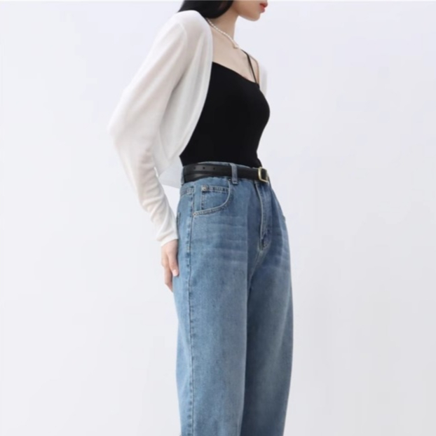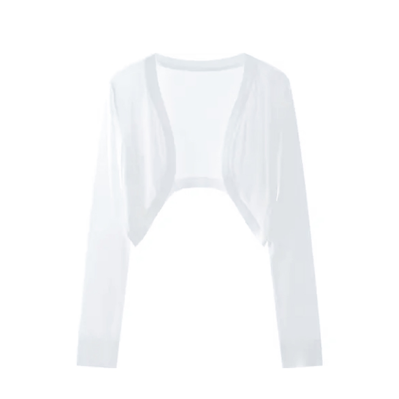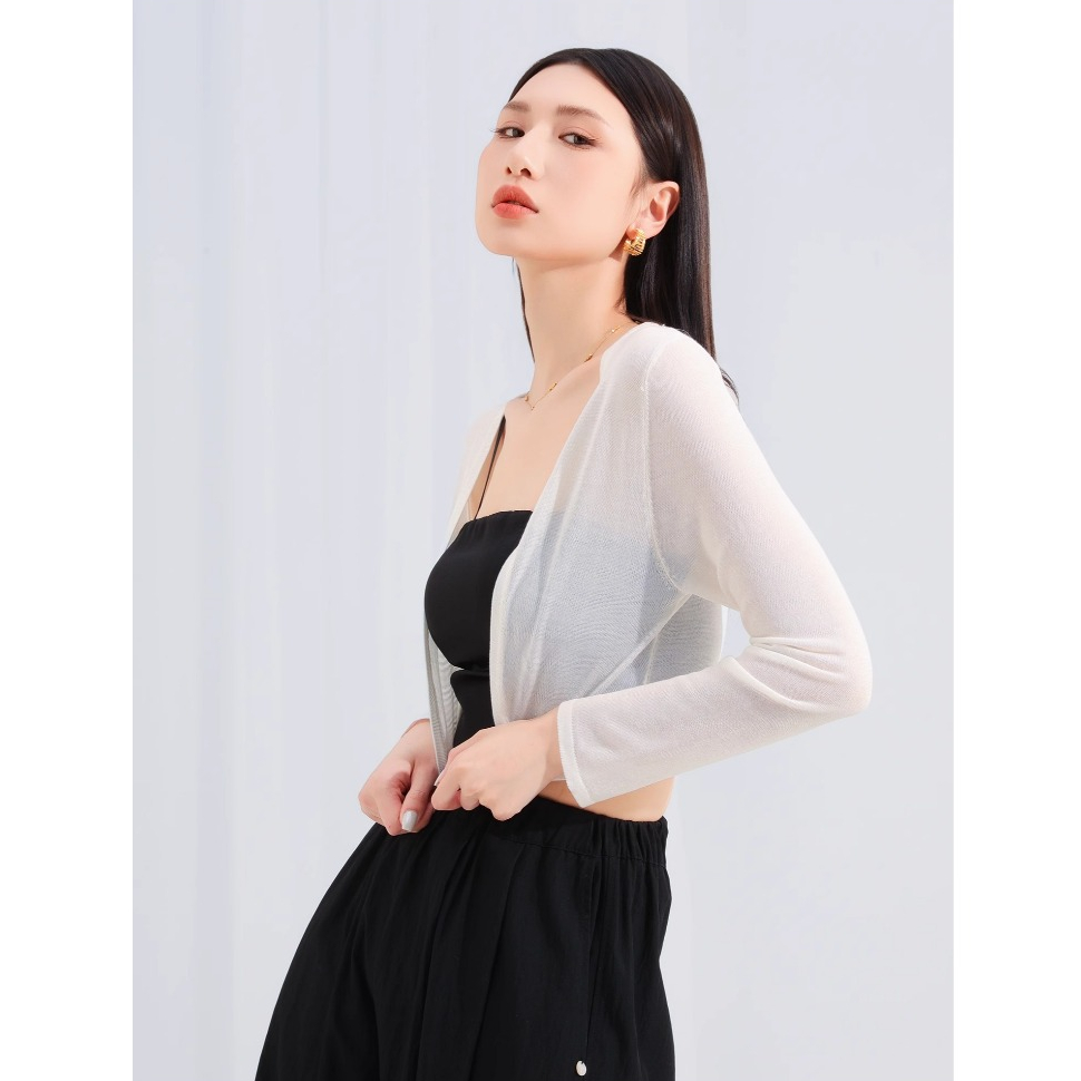 เสื้อคลุม แขนยาว สีดำ/สีขาว ทรงครอป ดีไซน์ชายผ้าโค้ง ผ้าโพลิเอสเตอร์ แมทซ์ได้ทุกลุค เสื้อคลุมกันแดด #7788