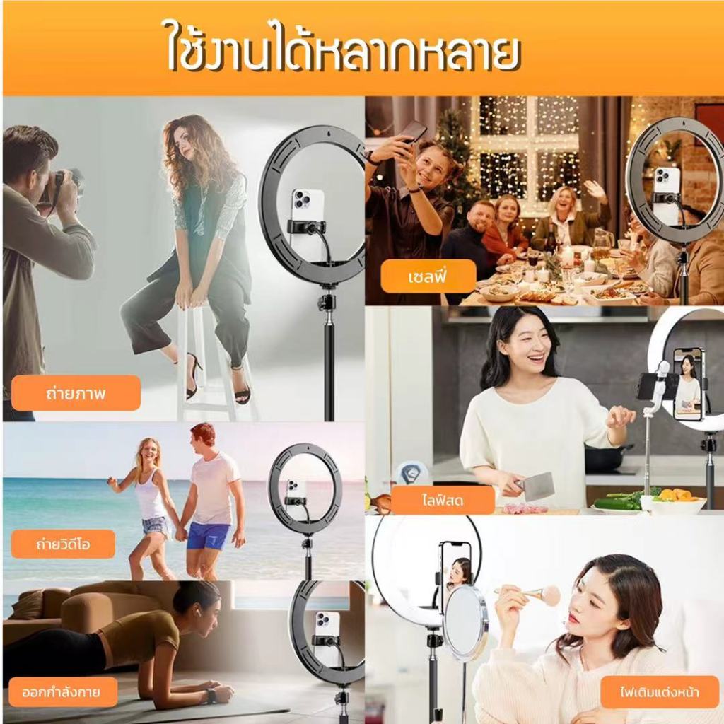 ไฟไลฟ์สด ไฟแต่งหน้า 26-30CM ขาตั้ง2เมตรพร้อมไฟ+ที่จับมือถือ ไฟสตูดิโอ