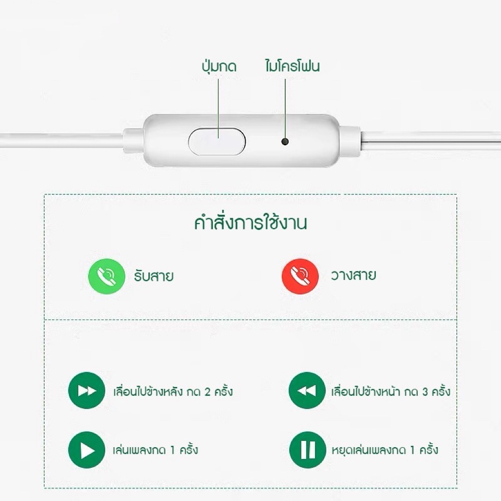 🔥หูฟังพกพา OP VIVO หูฟังมีสาย เสียงดี หูฟังนุ่ม คุณภาพดี พร้อมไมโครโฟน แบบแจ๊ค3.5มม