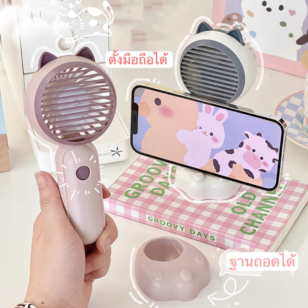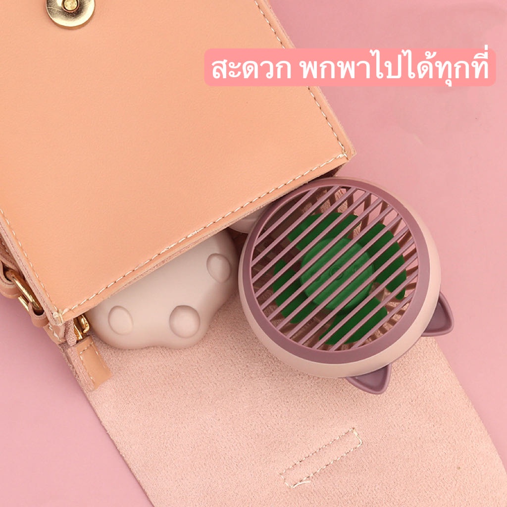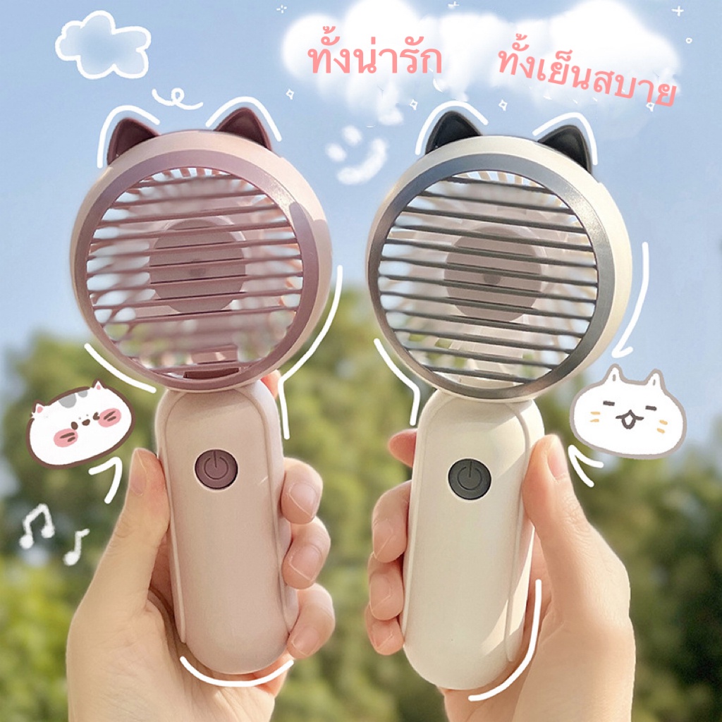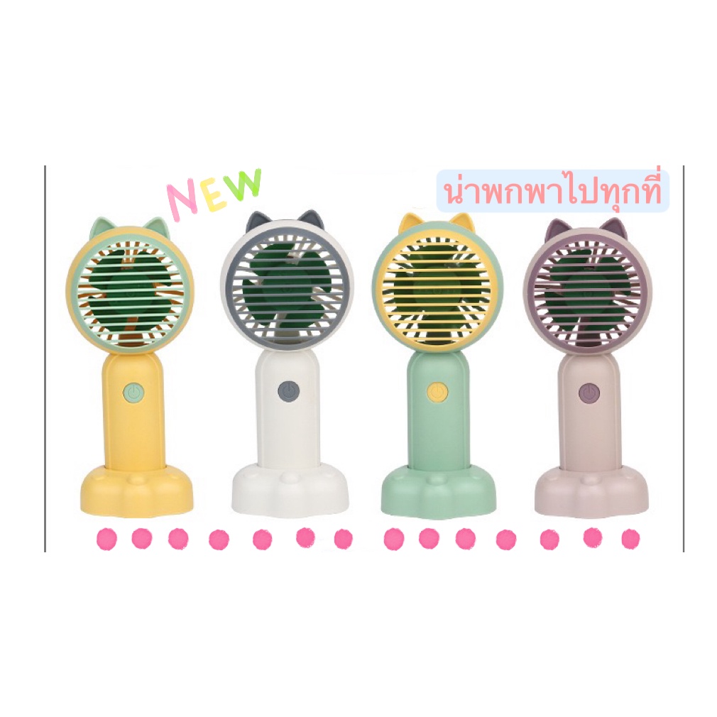 🔥พัดลม Mini fan USB รุ่นพัดลมพกพาลายหูแมว ดีไซน์น่ารัก พัดลมตั้งโต๊ะ ถอดฐาน ถือมือได้E46