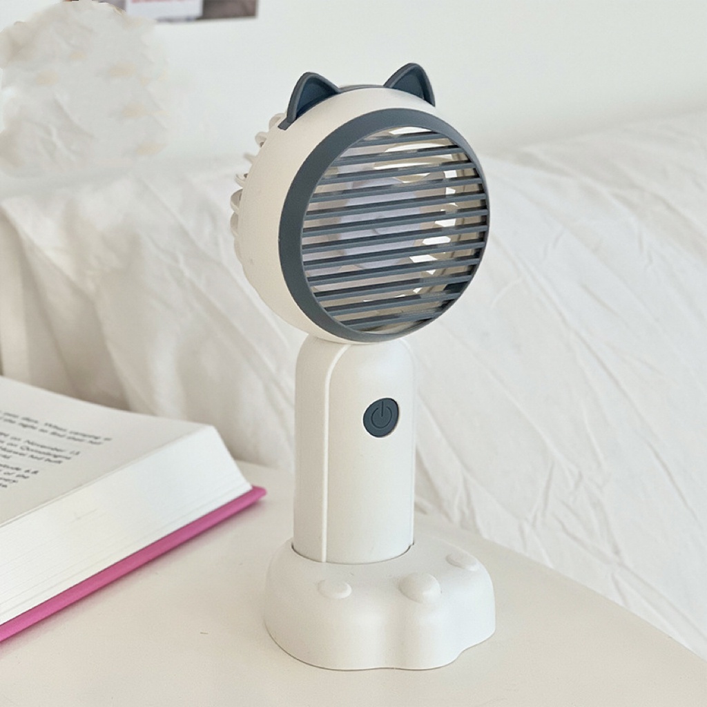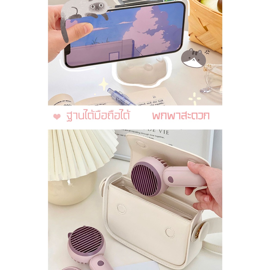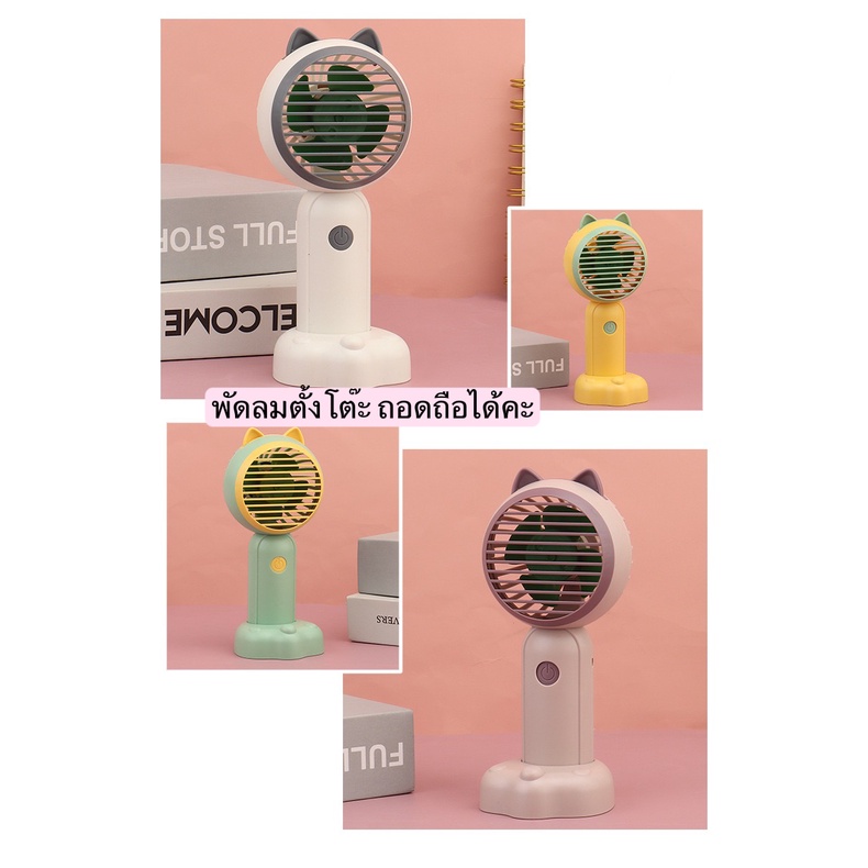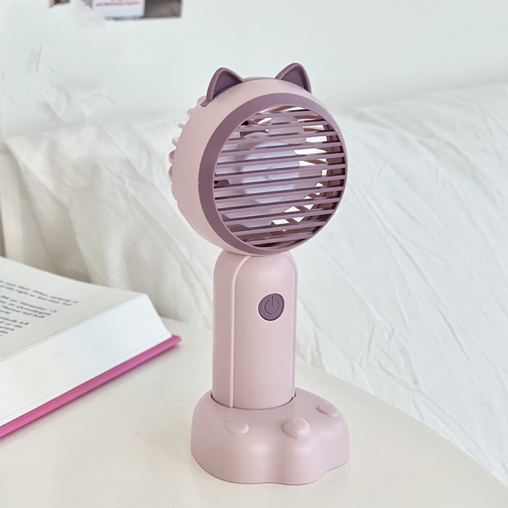 🔥พัดลม Mini fan USB รุ่นพัดลมพกพาลายหูแมว ดีไซน์น่ารัก พัดลมตั้งโต๊ะ ถอดฐาน ถือมือได้E46