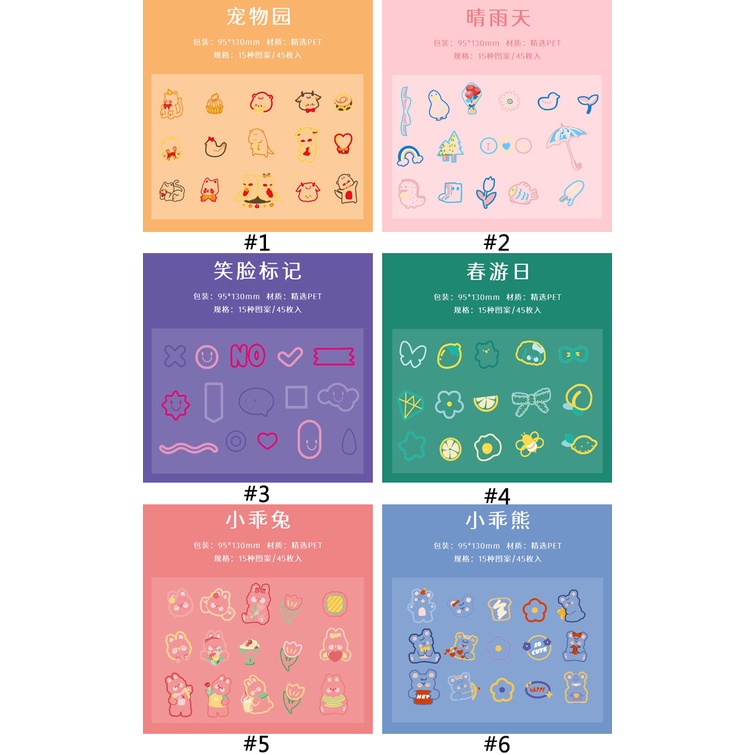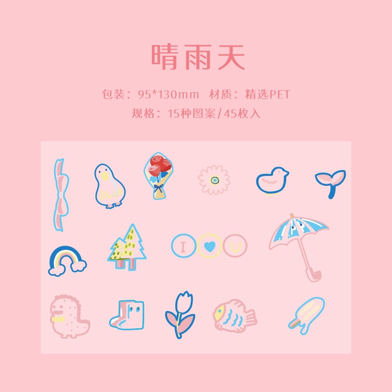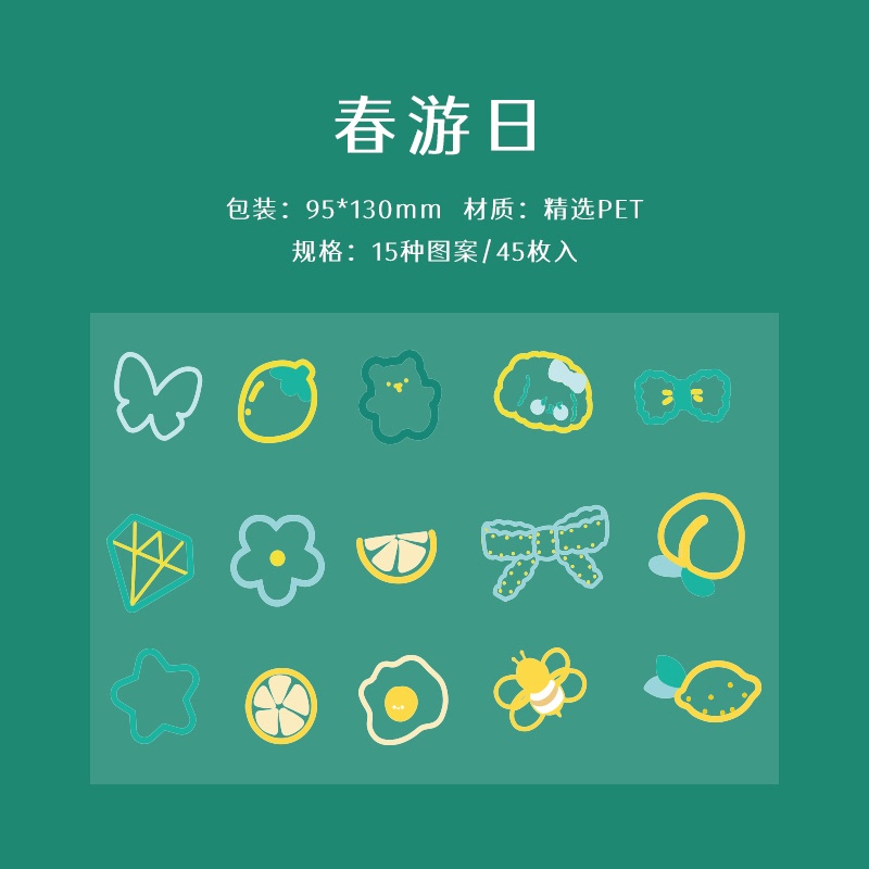 สติกเกอร์ ลายการ์ตูน แบบกันน้ำ สําหรับตกแต่งบ้าน DIY จำนวน 45 ชิ้น