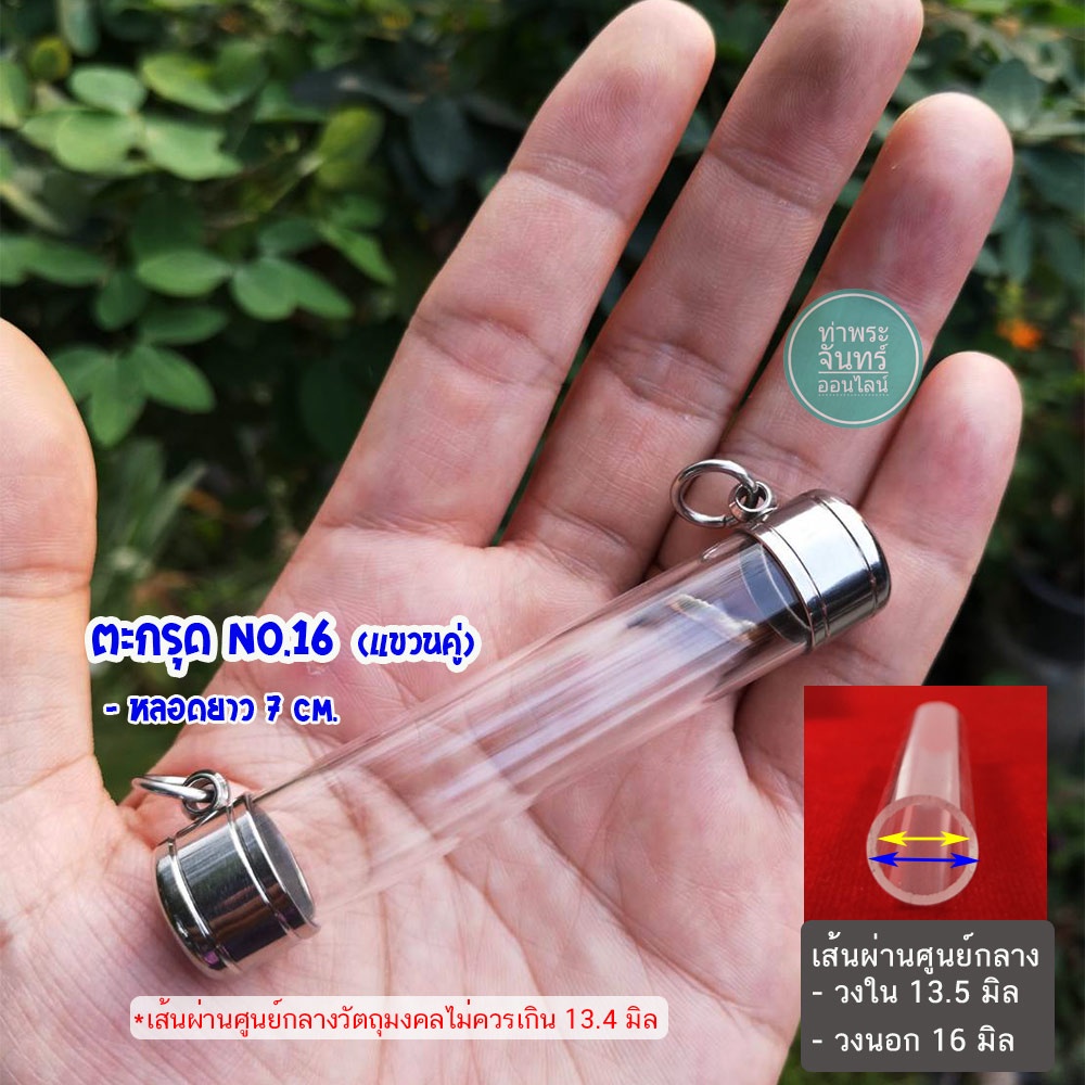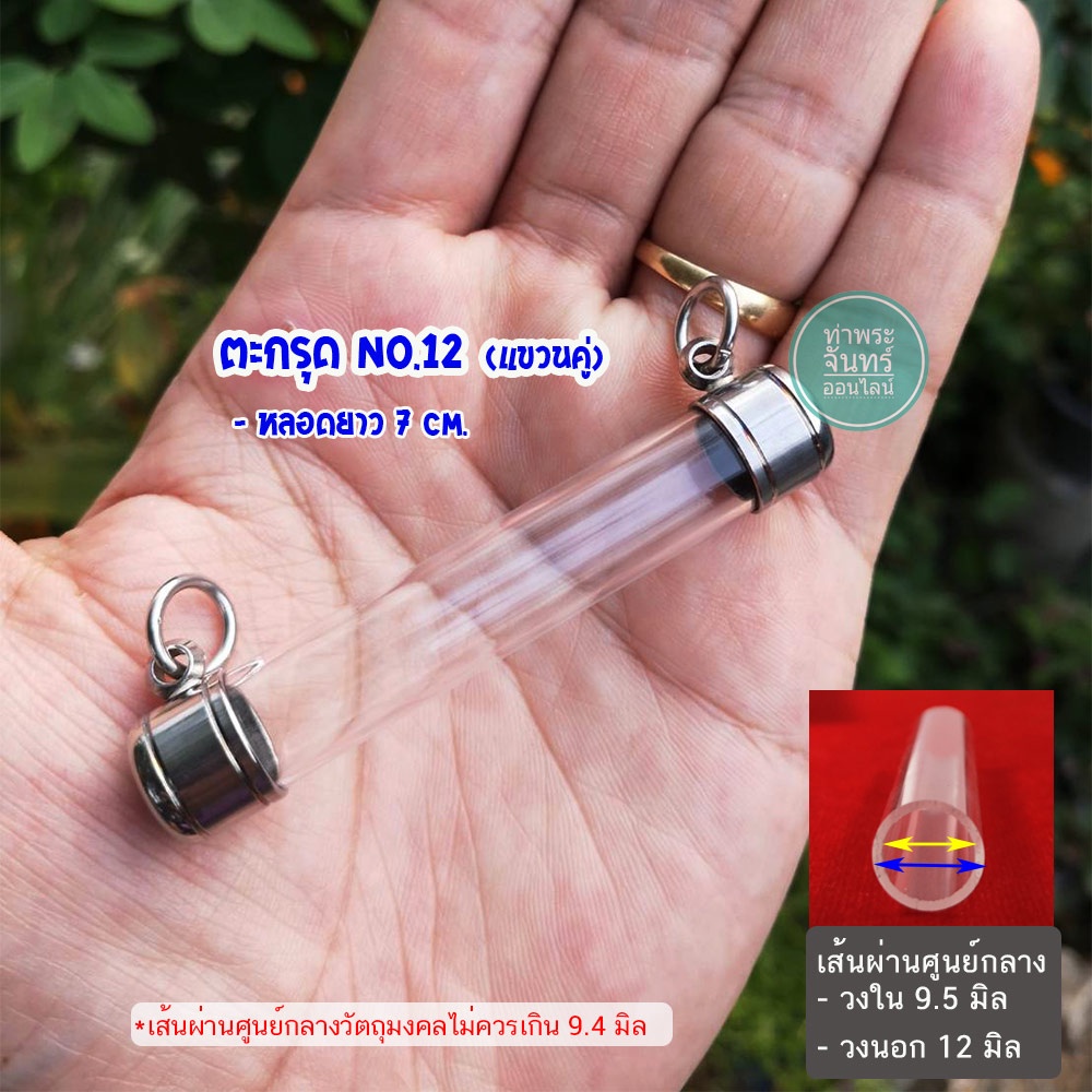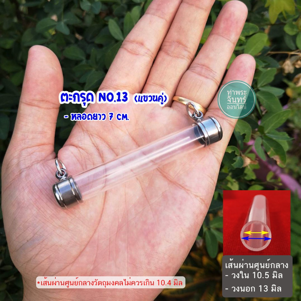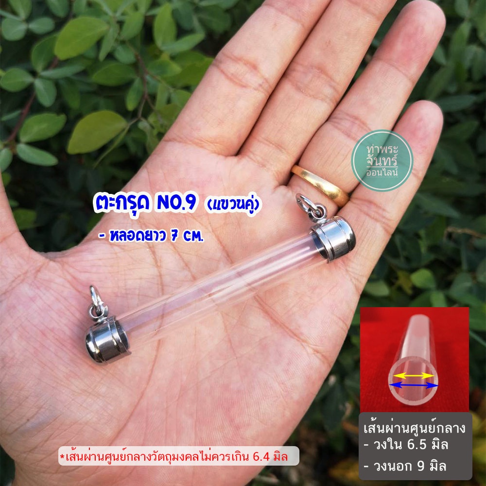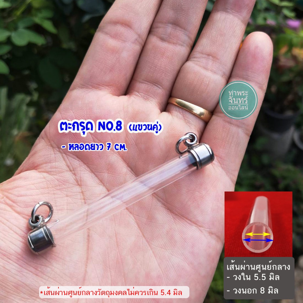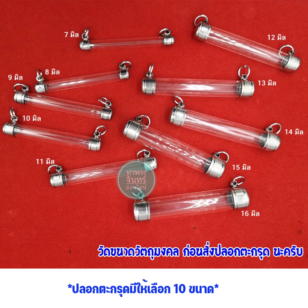 ตะกรุด ปลอกตะกรุดสแตนเลสพร้อมหลอดอะคริลิคใส แบบแขวนคู่ แนวนอน 2 ห่วง เบอร์ 7-16 หลอดตะกรุดยาว 7 Cm.