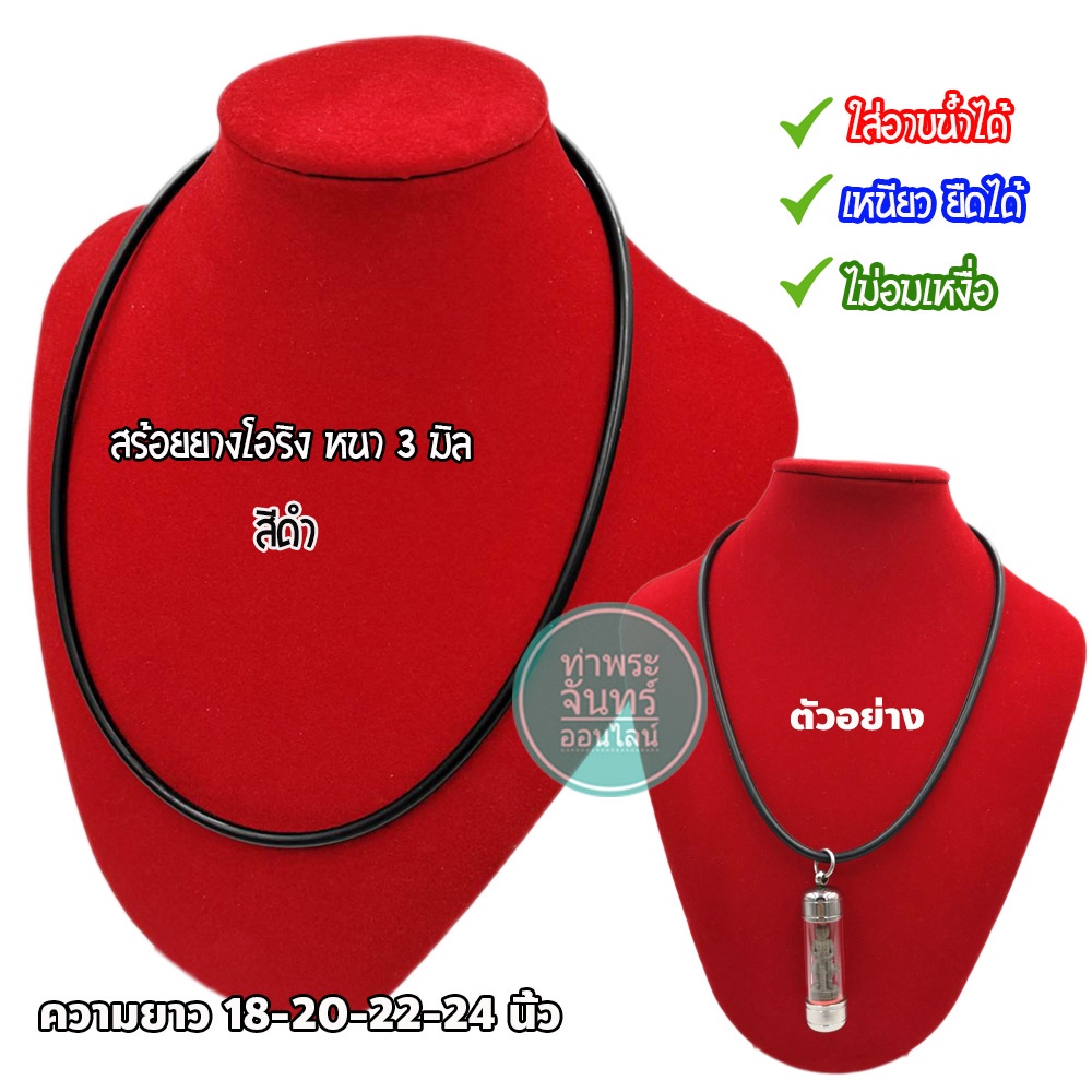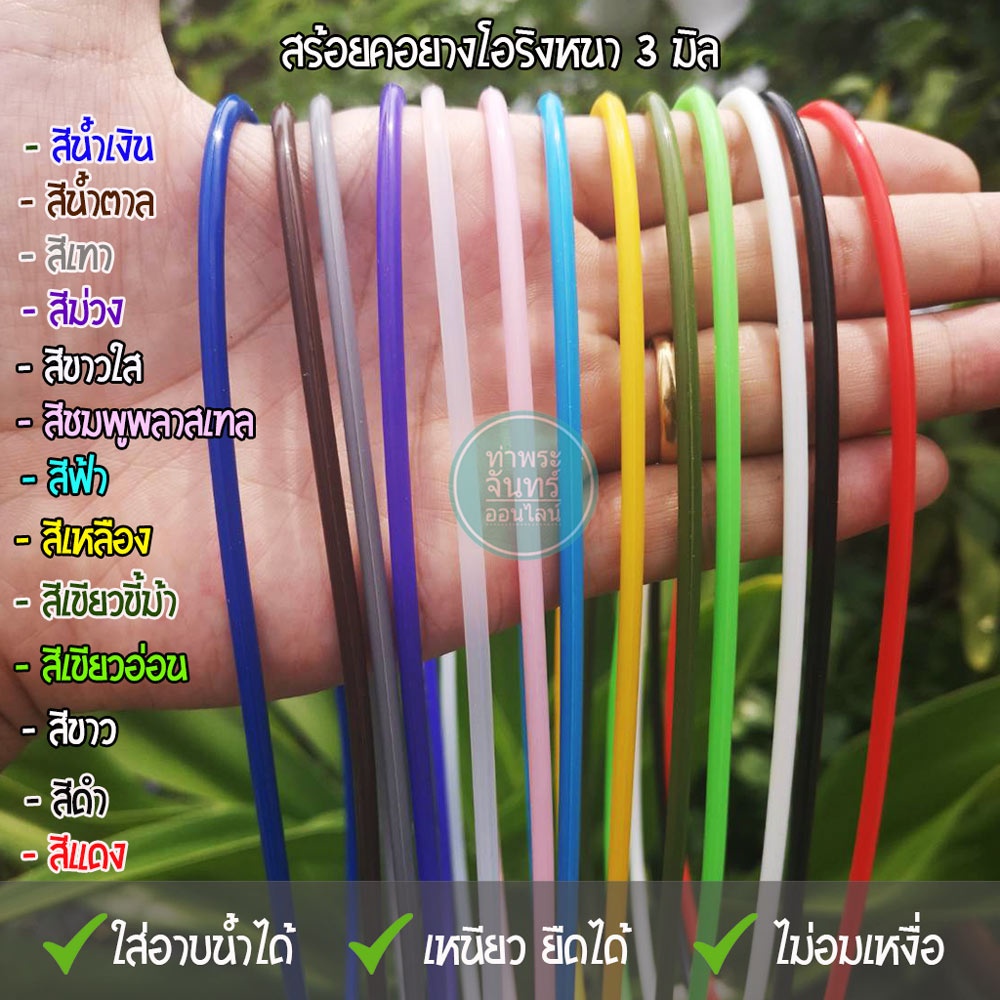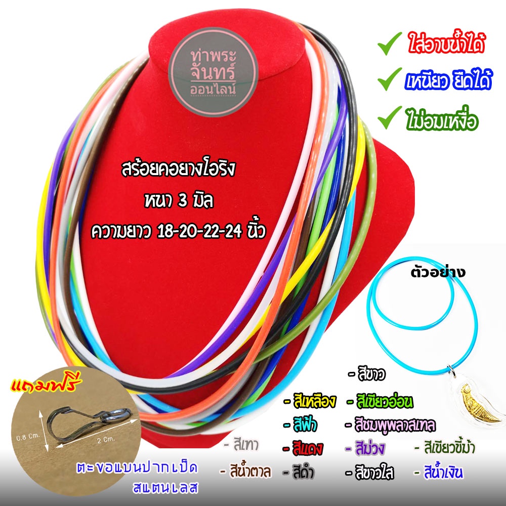 สร้อยยาง โอริง สร้อยคอยางยืด แขวนพระ (มีให้เลือกหลายสี) แถมฟรี ตะขอแบนปากเป็ด งานสแตนเลส