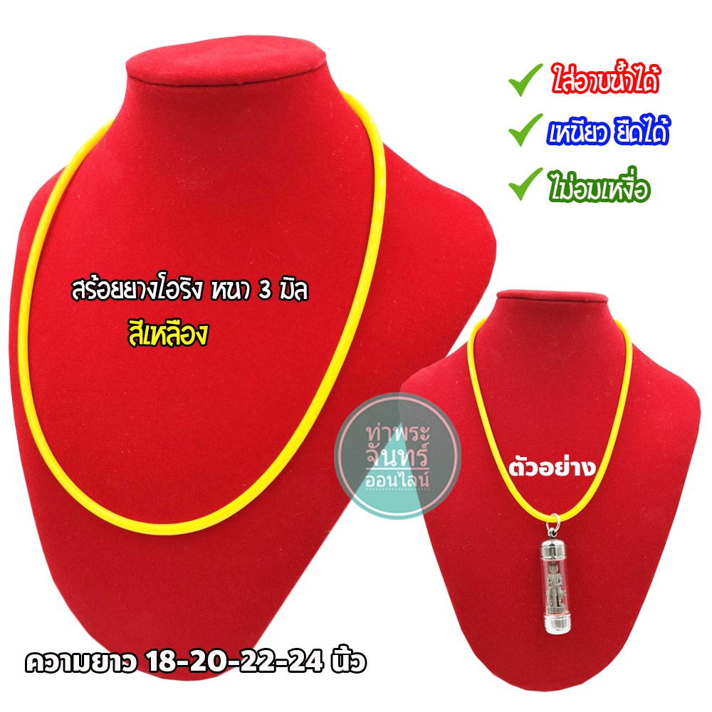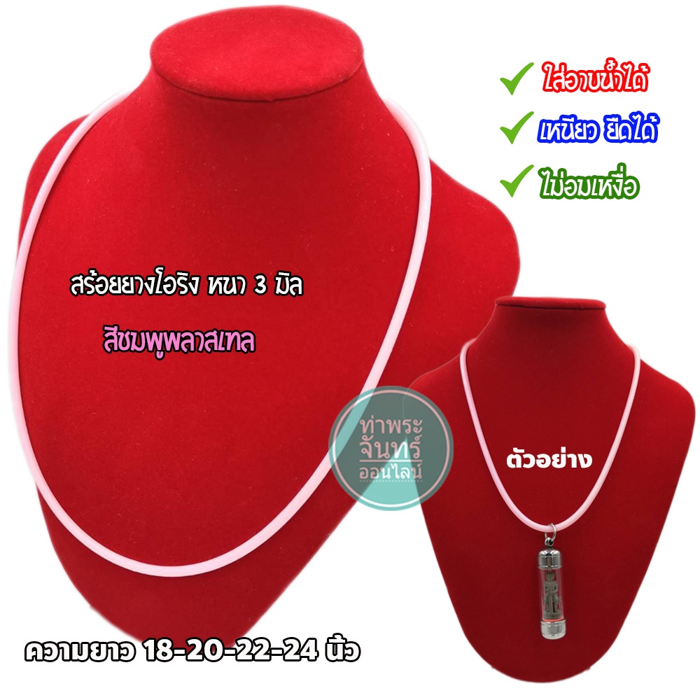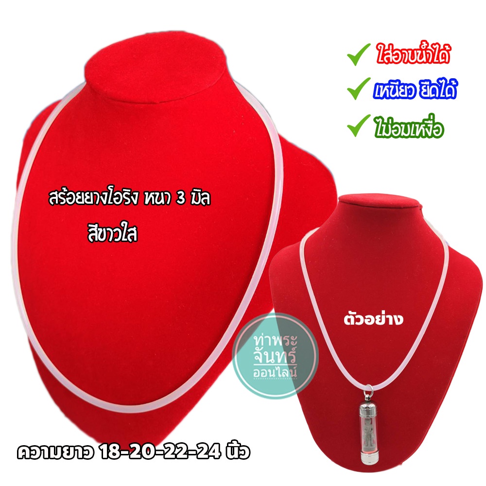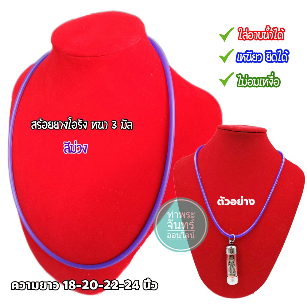 สร้อยยาง โอริง สร้อยคอยางยืด แขวนพระ (มีให้เลือกหลายสี) แถมฟรี ตะขอแบนปากเป็ด งานสแตนเลส