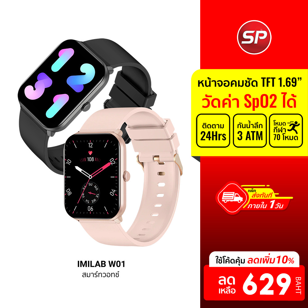 [ลดเหลือ 629] IMILAB W01 ศูนย์ไทย สมาร์ทวอทช์ 1.69นิ้ว แจ้งเตือนไทย หน้าจอ100แบบ 70โหมดกีฬา -30D