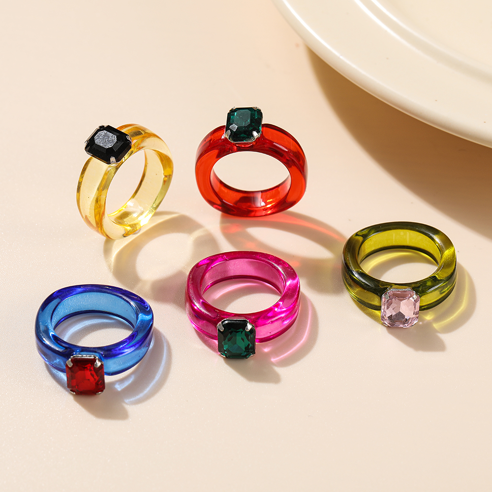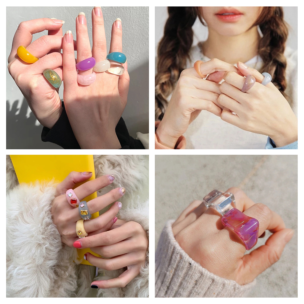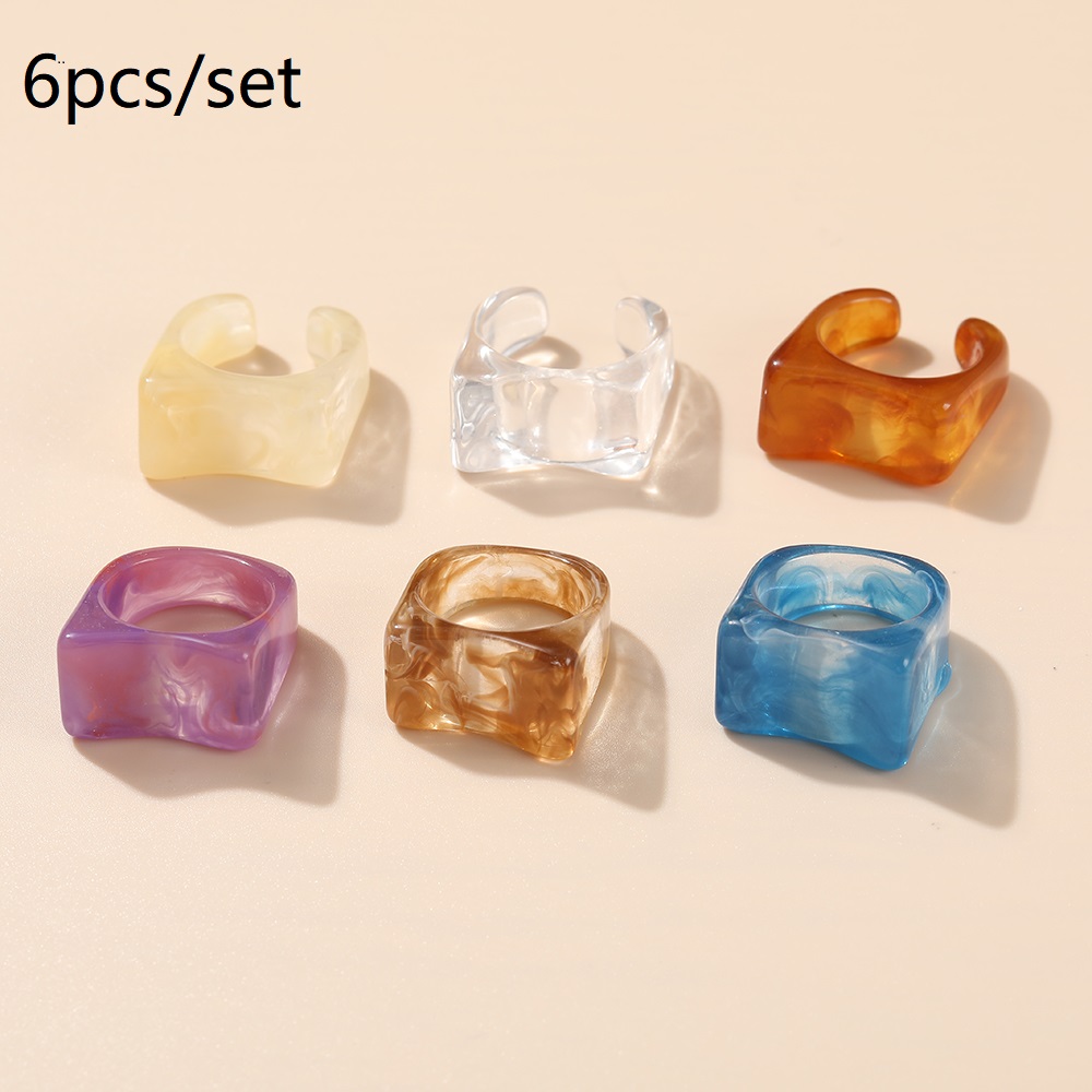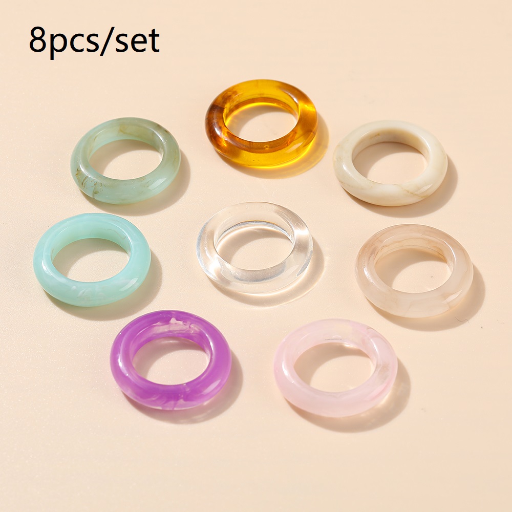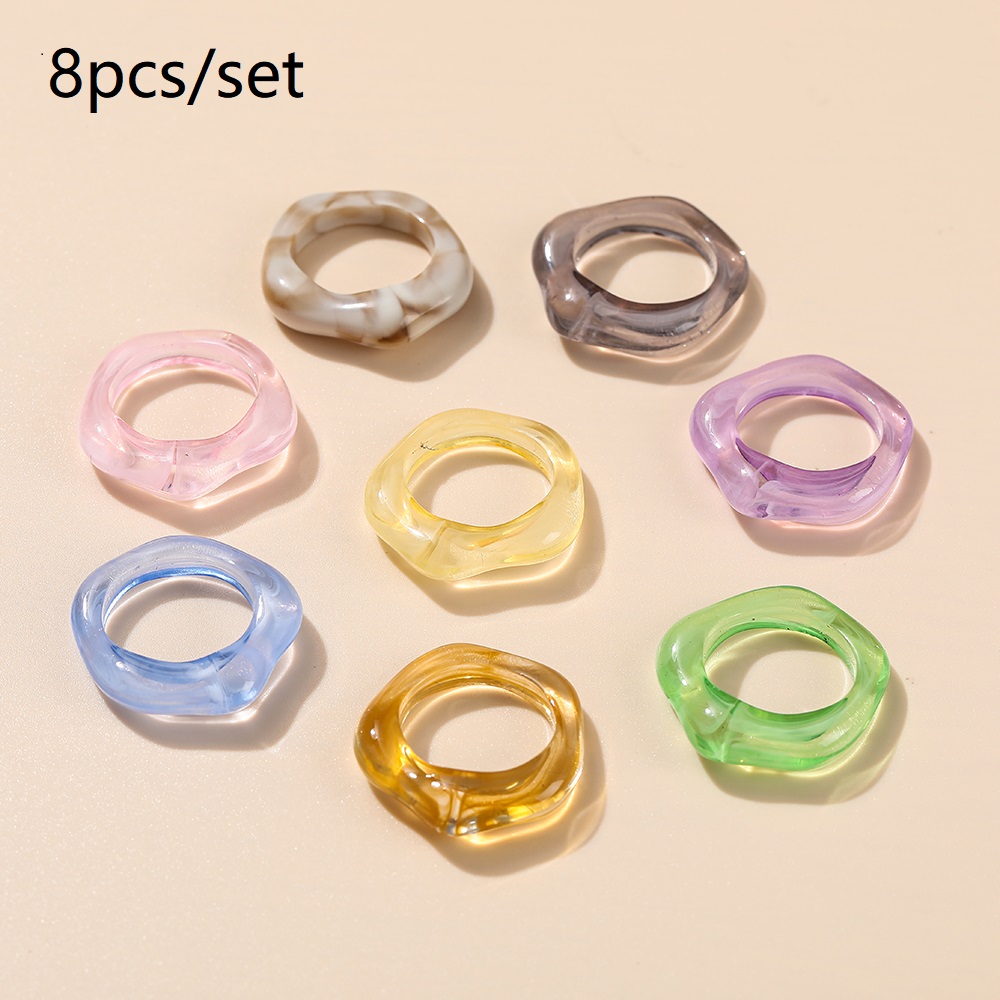 แหวน อะคริลิก เรซิ่น เนื้อใส ทรงกลม ทรงเหลี่ยม หลากสี 8 ชิ้น/ชุด สำหรับผู้หญิง