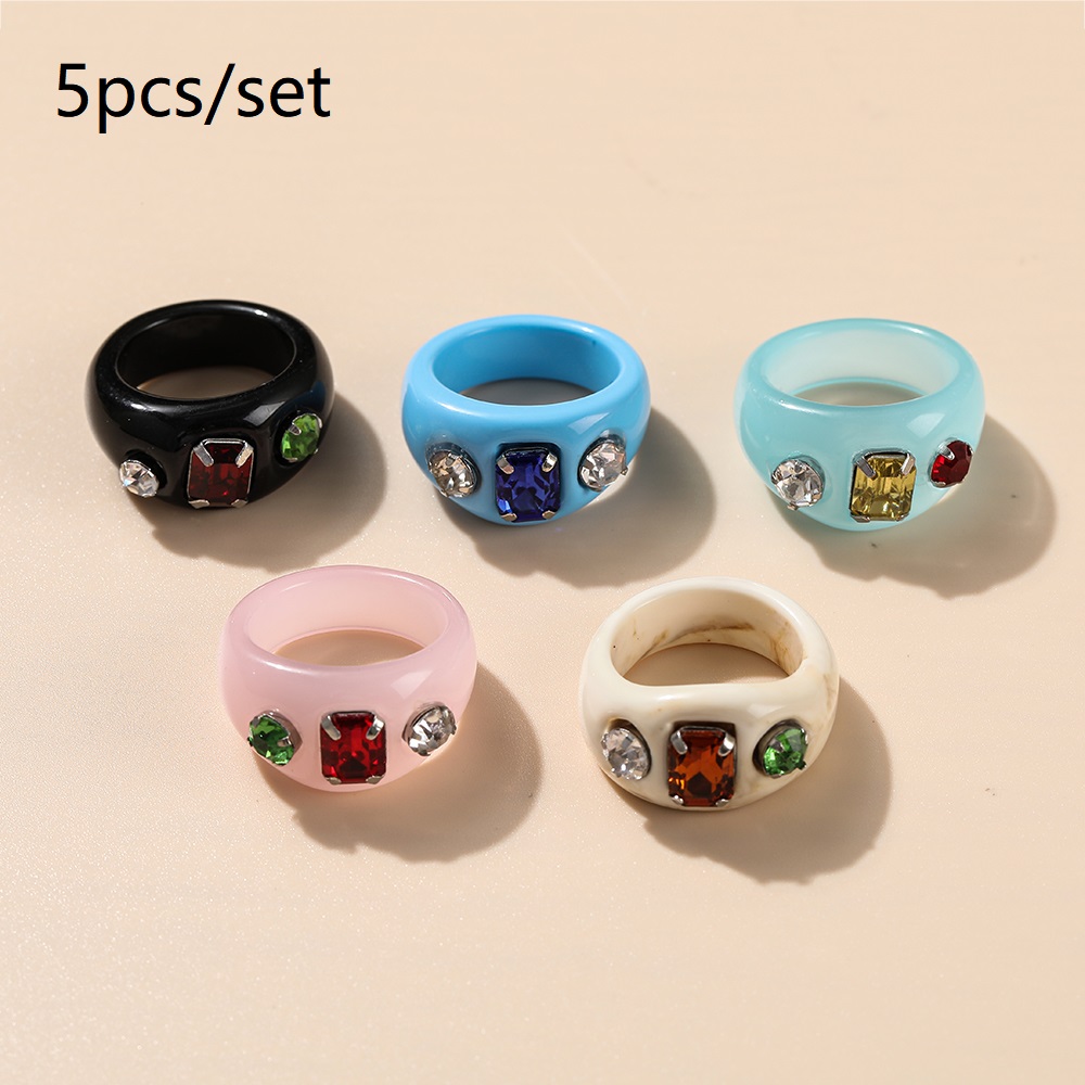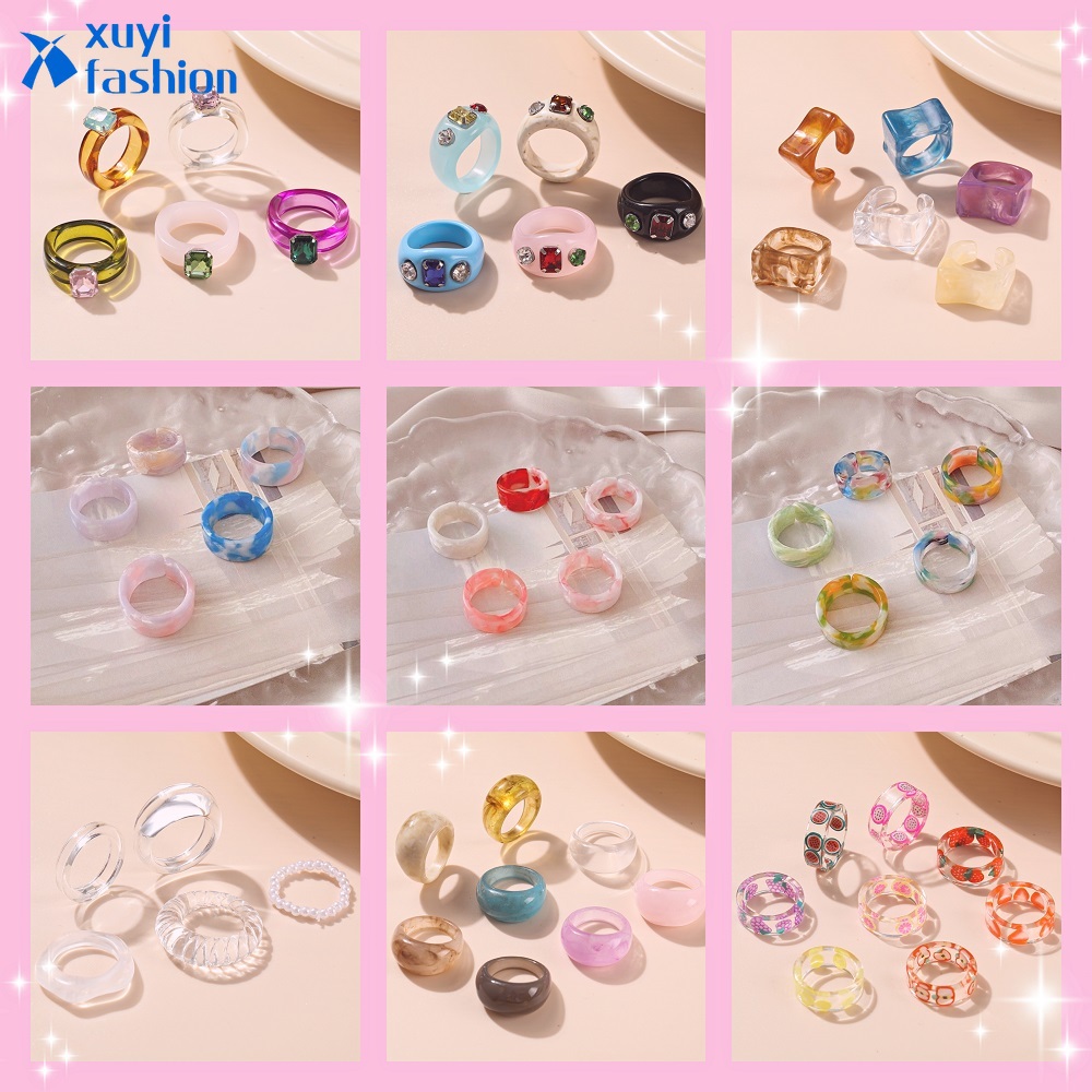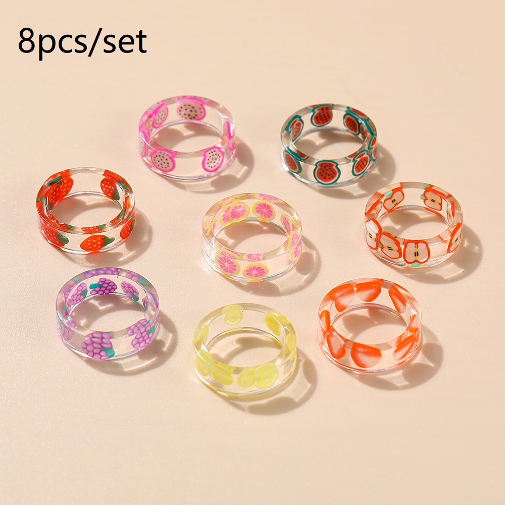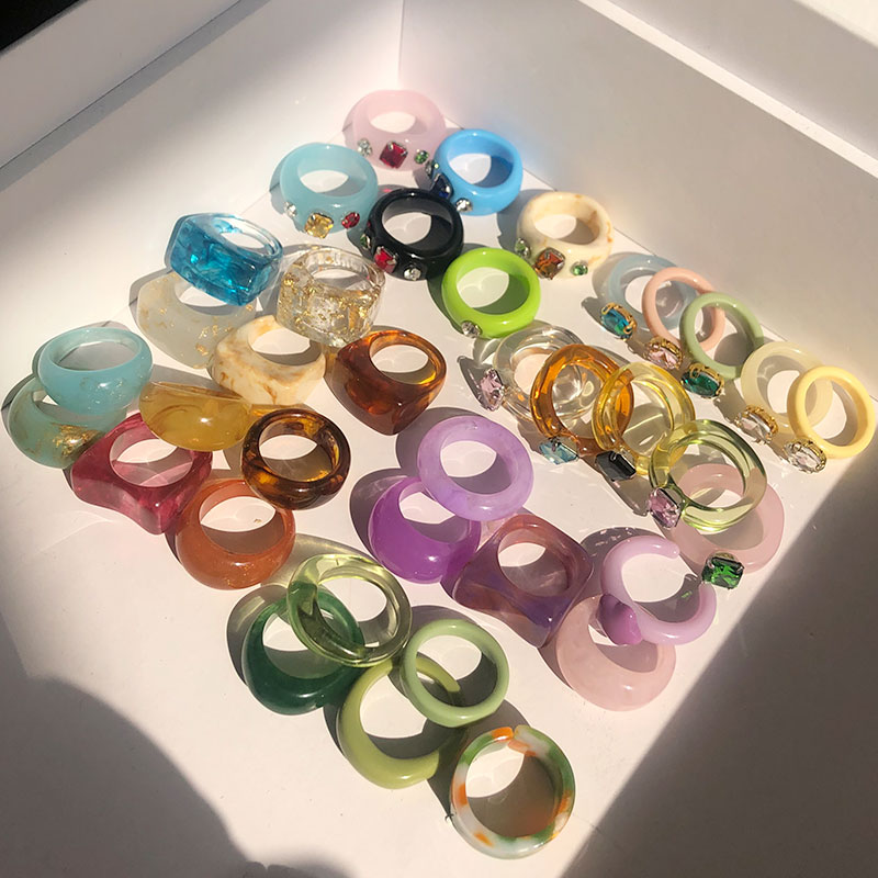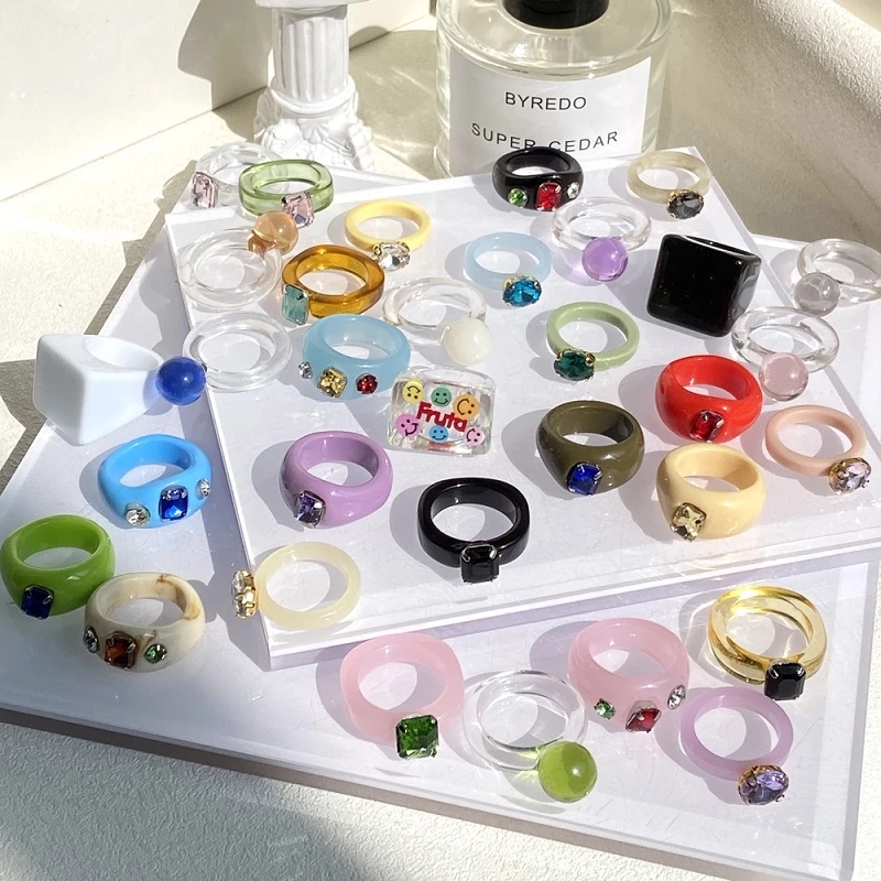 แหวน อะคริลิก เรซิ่น เนื้อใส ทรงกลม ทรงเหลี่ยม หลากสี 8 ชิ้น/ชุด สำหรับผู้หญิง