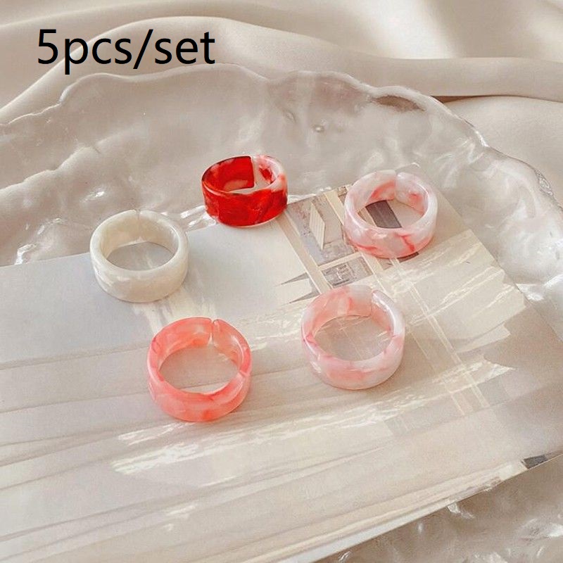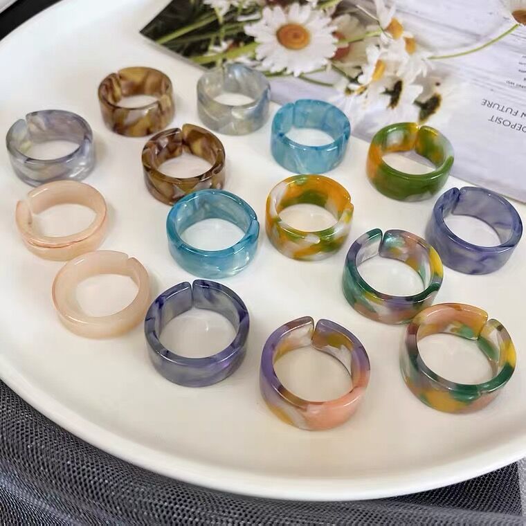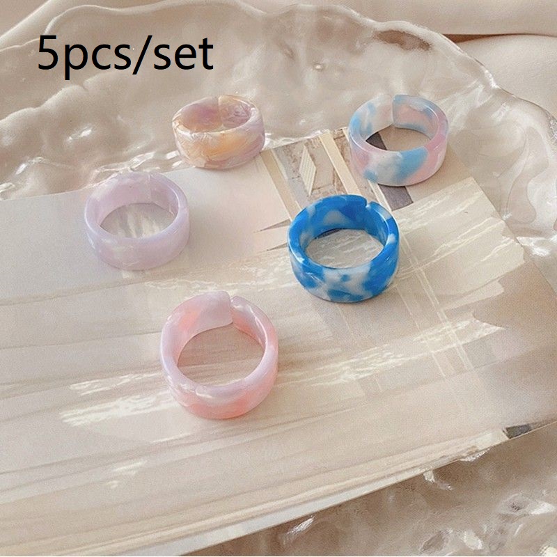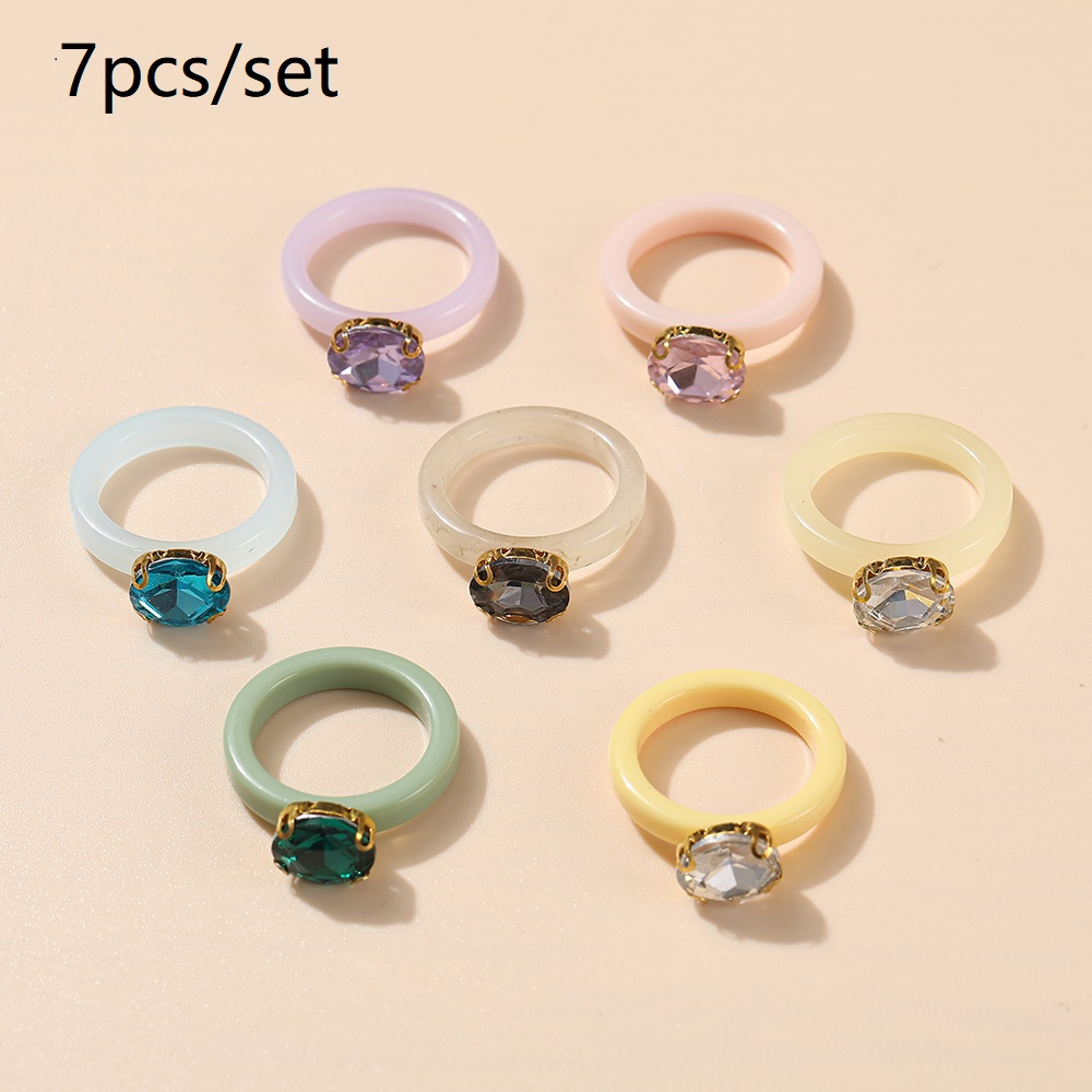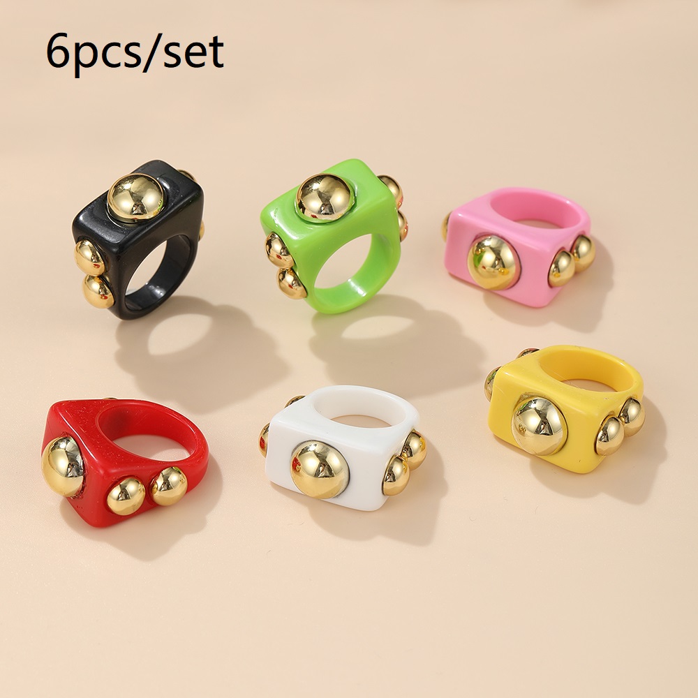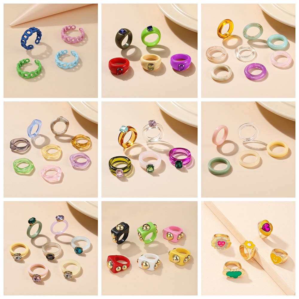 แหวน อะคริลิก เรซิ่น เนื้อใส ทรงกลม ทรงเหลี่ยม หลากสี 8 ชิ้น/ชุด สำหรับผู้หญิง