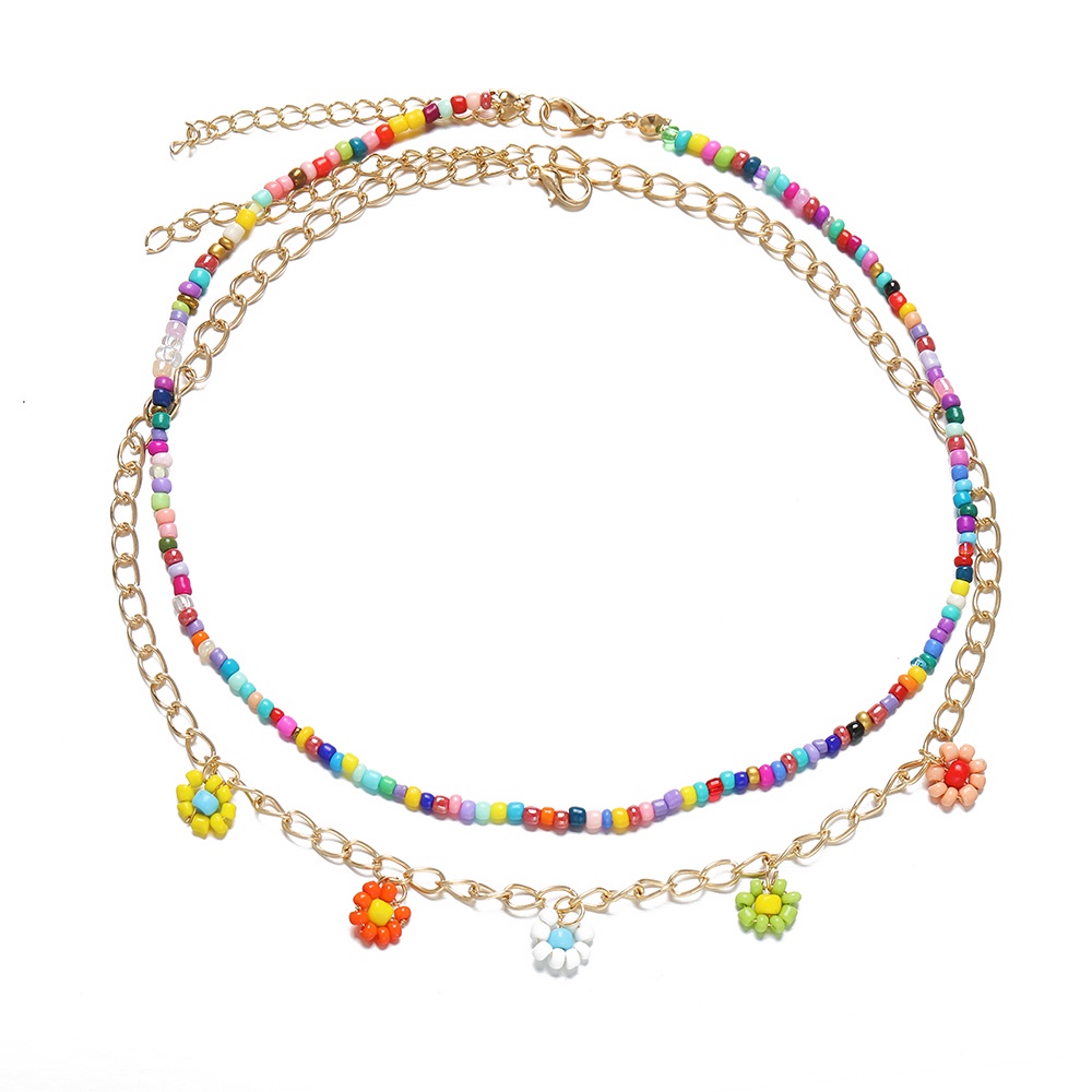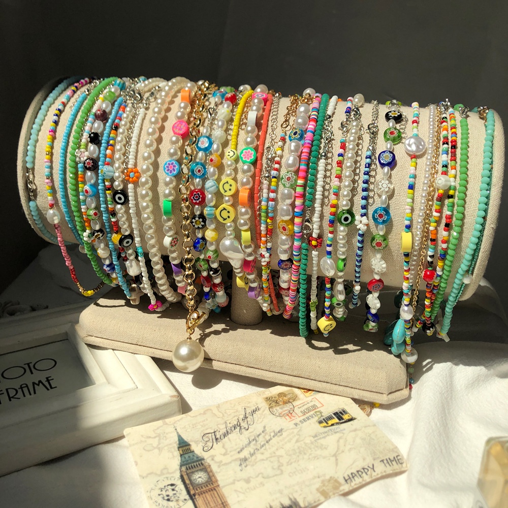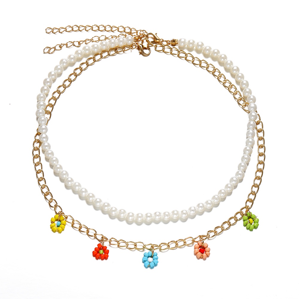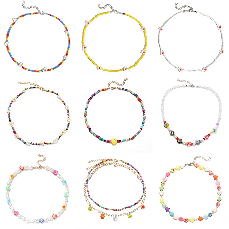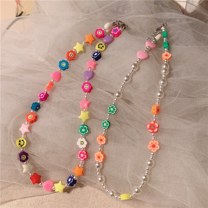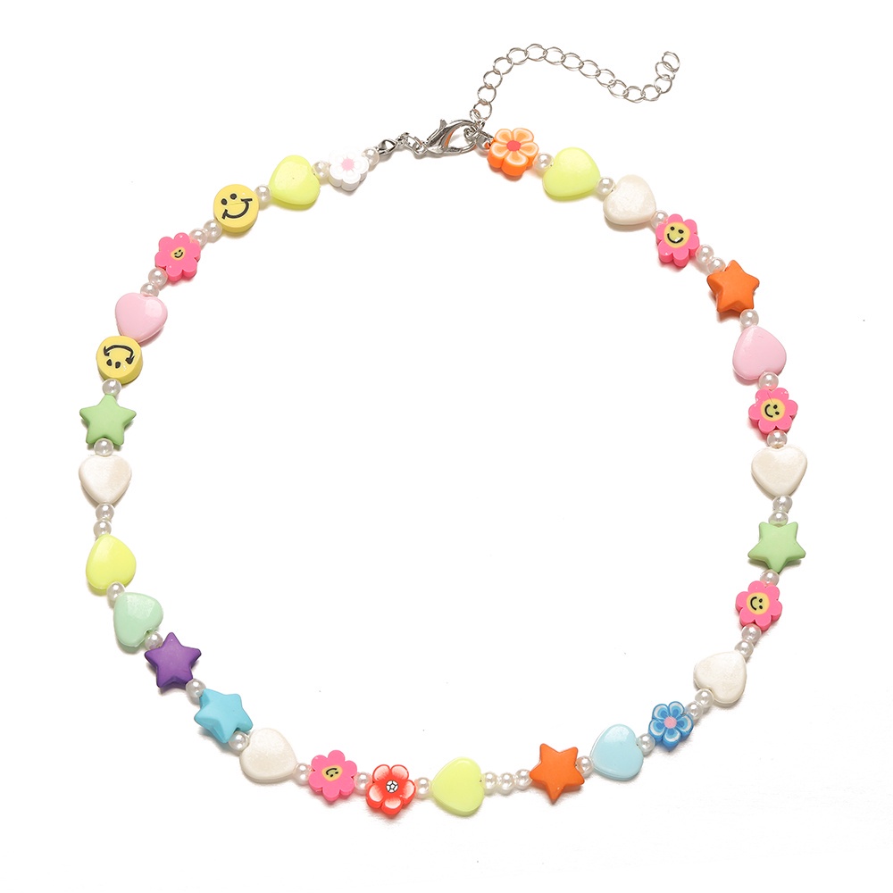 เครื่องประดับ สร้อยคอโชคเกอร์ ประดับลูกปัดไข่มุก ลายดอกไม้ และดาว และหน้ายิ้มน่ารัก สีสันสดใส สําหรับผู้หญิง