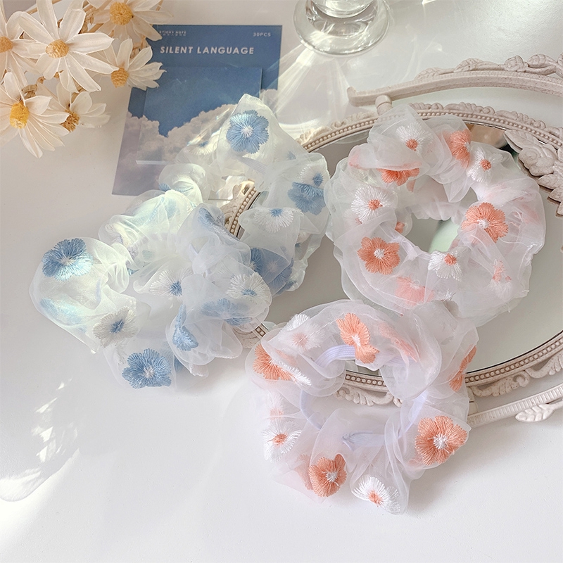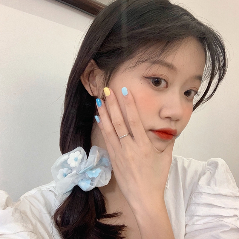 ยางรัดผม ลายดอกไม้ ผ้าชีฟอง สไตล์เกาหลี
