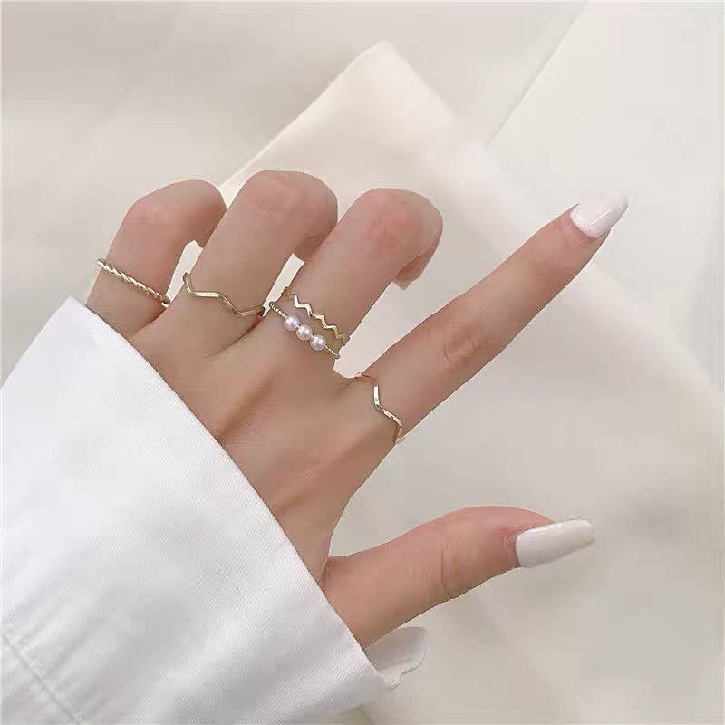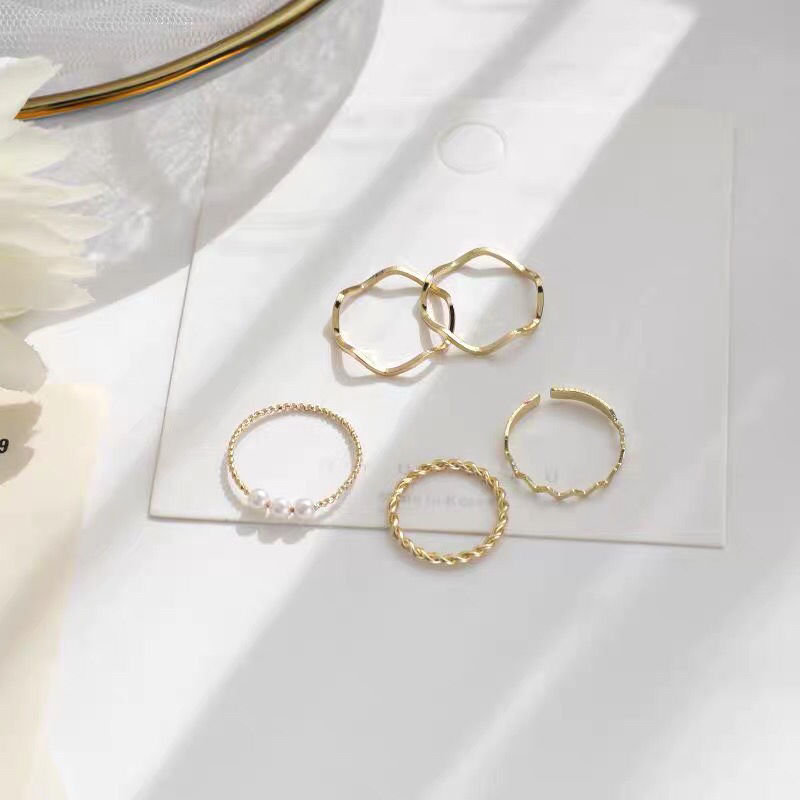 ชุดเครื่องประดับ แหวนโลหะ สไตล์เกาหลี สําหรับผู้หญิง